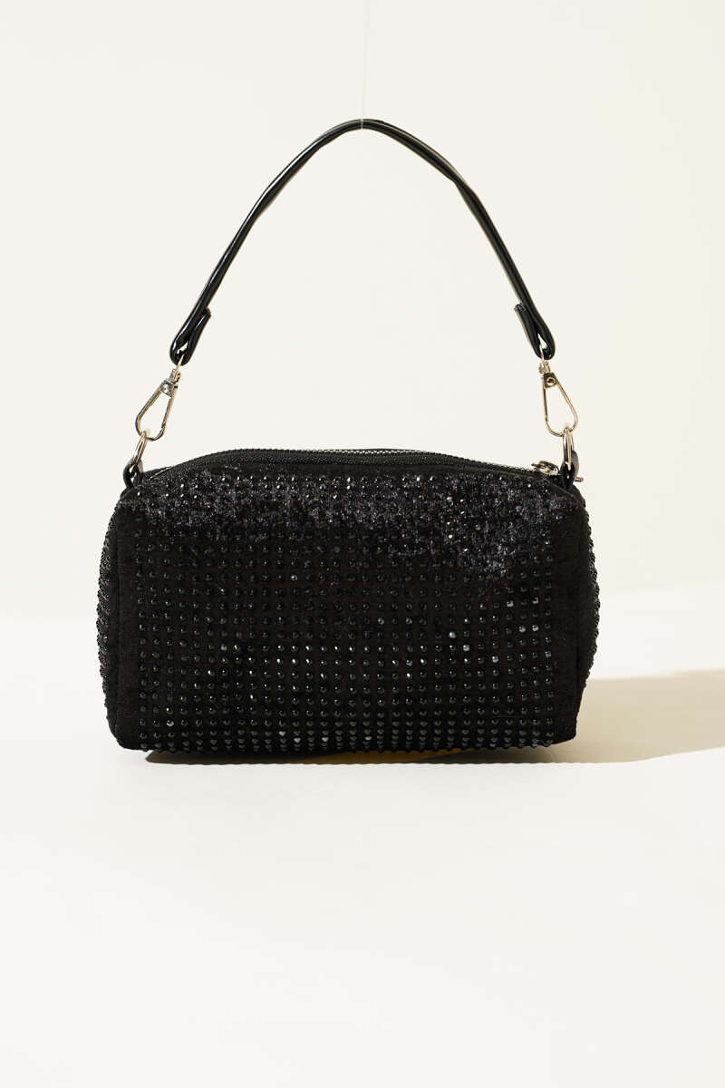 Mini Taşlı Kadın El Çantası Siyah Siyah