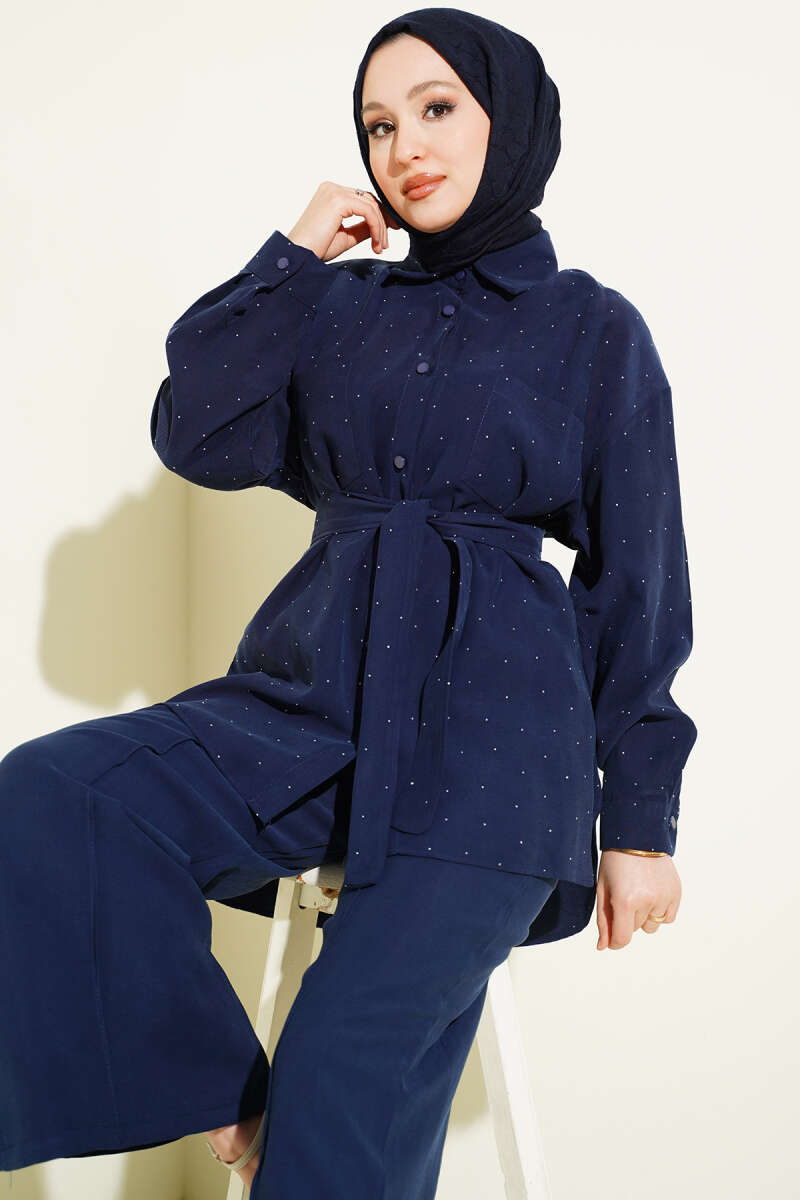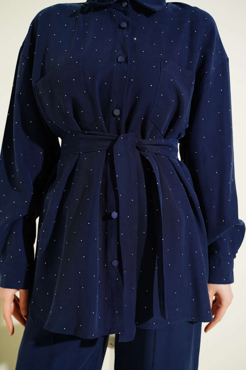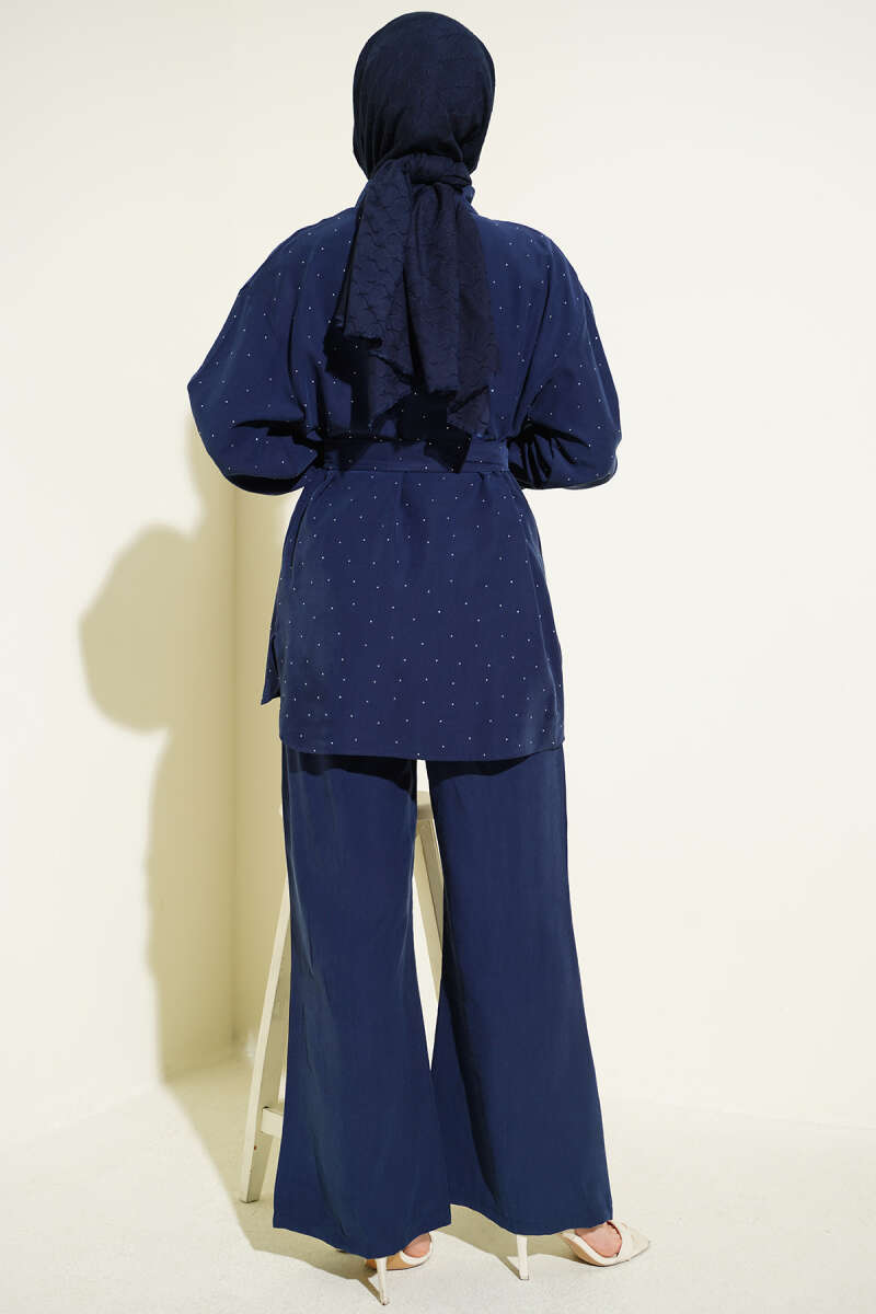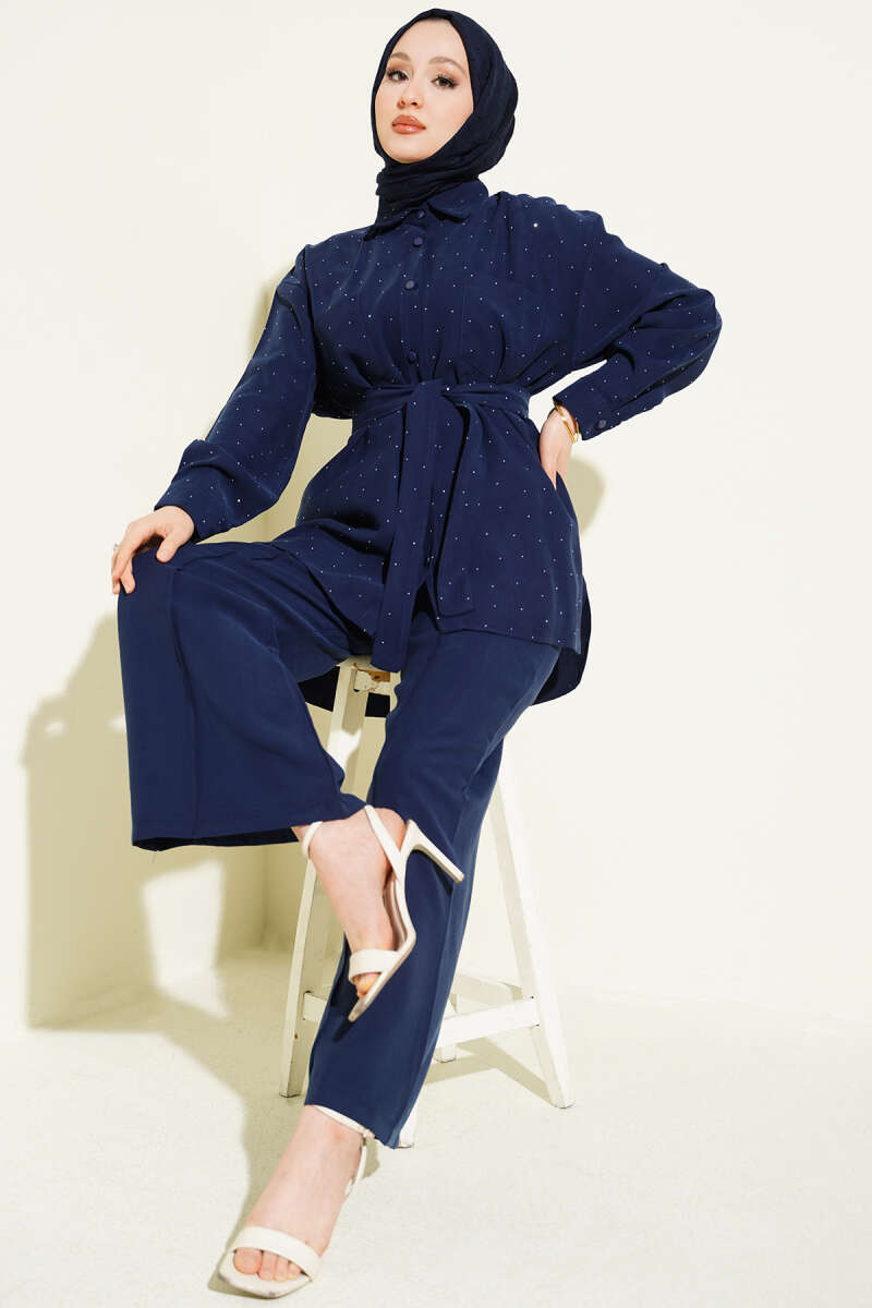Mini Taşlı Kuşaklı İkili Takım Lacivert