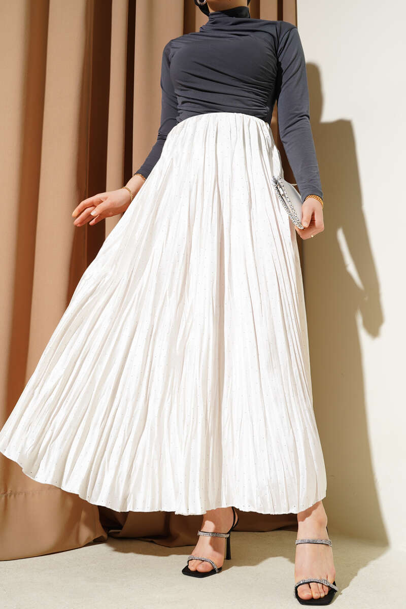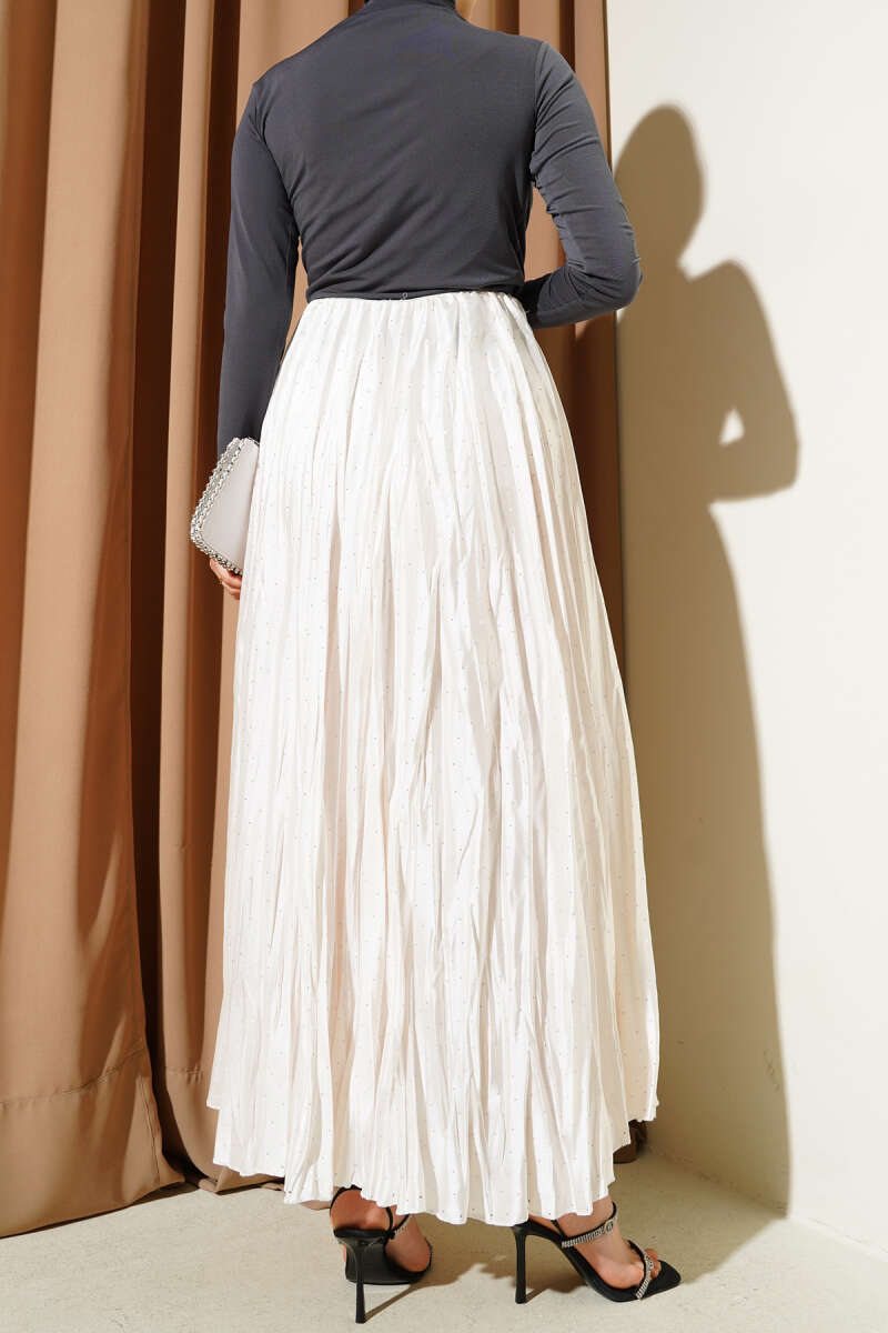 Fermuarlı Kemerli Poplin Etek Mürdüm