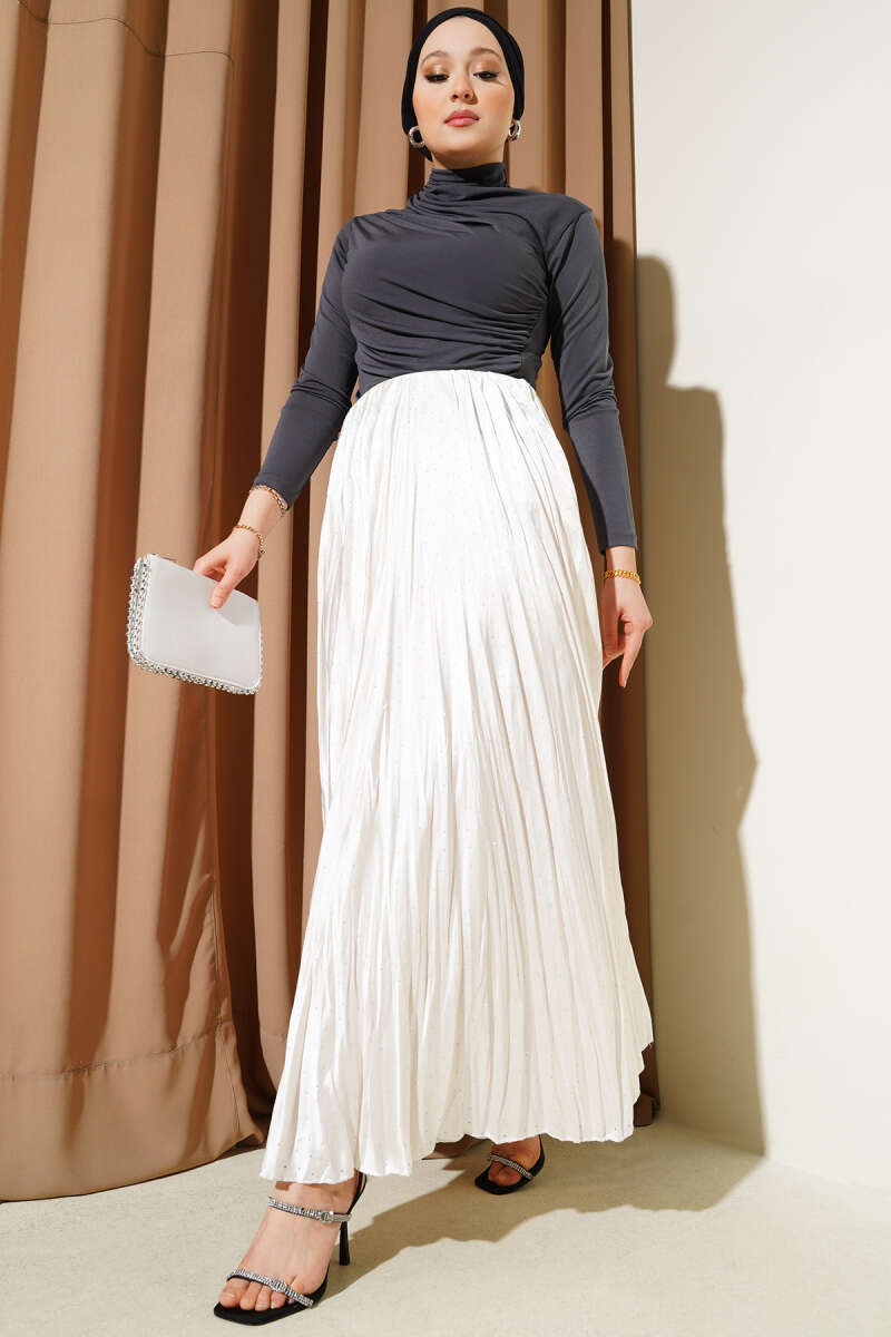 Oval Kemer Tokalı Ekoseli Etek Gri