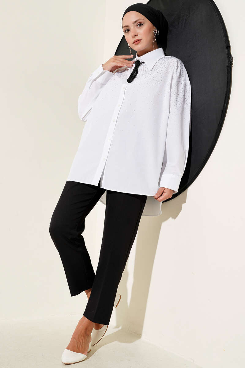 V Yaka Simli Bluz Siyah