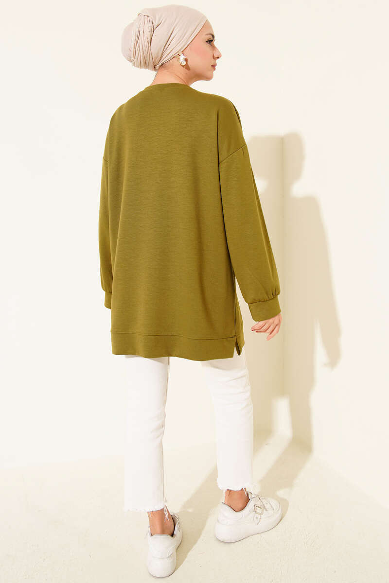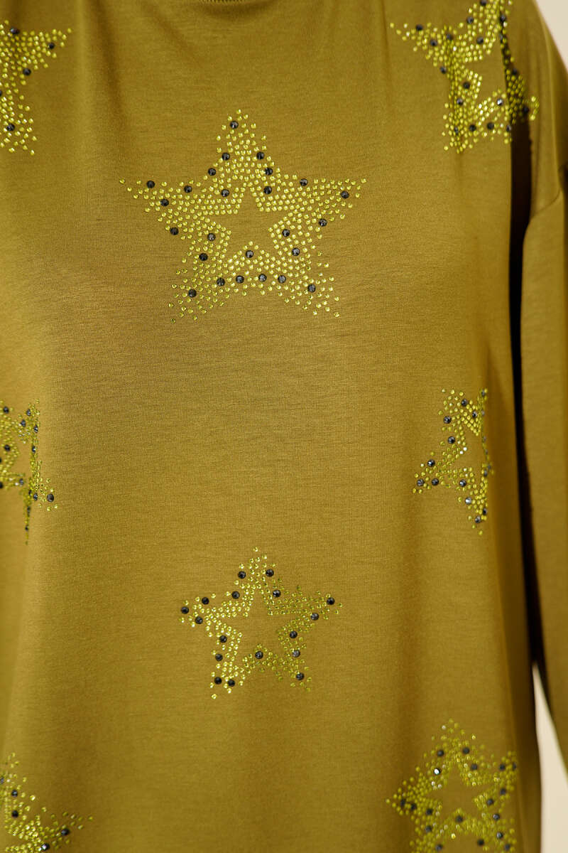 Mini Yıldız Taşlı Tunik Yağ Yeşili