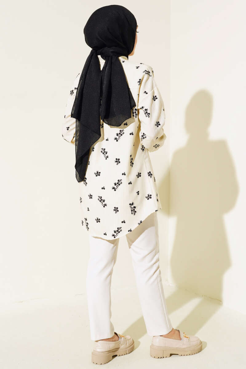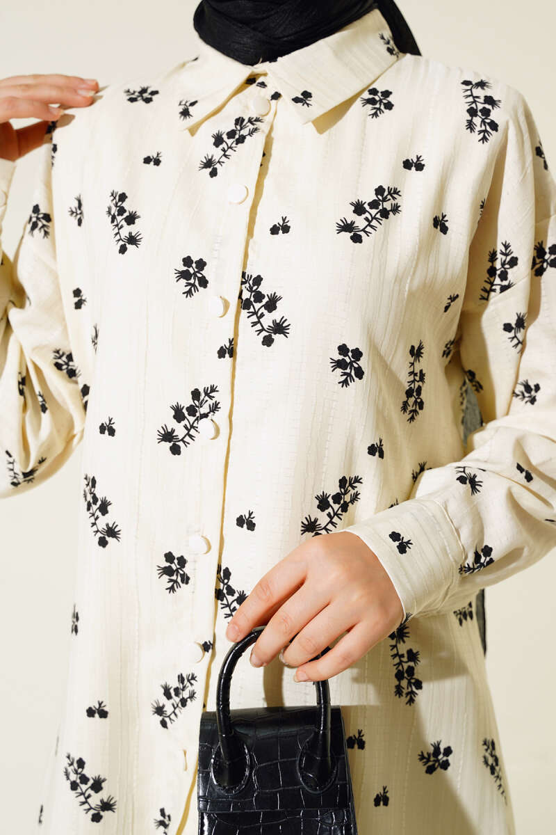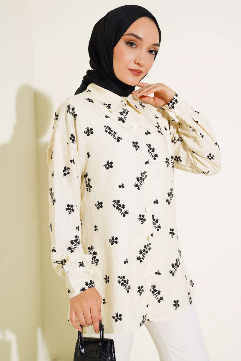 Minik Çiçek Desenli Gömlek Lacivert