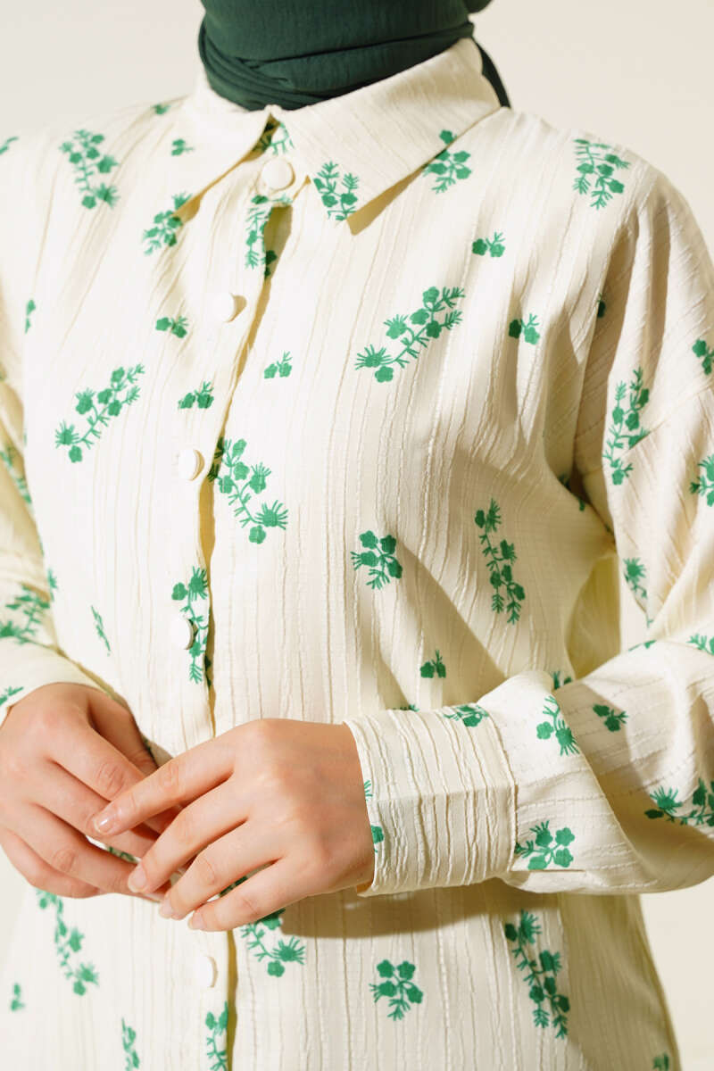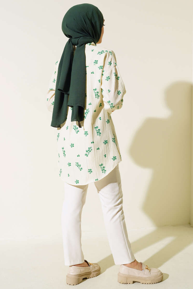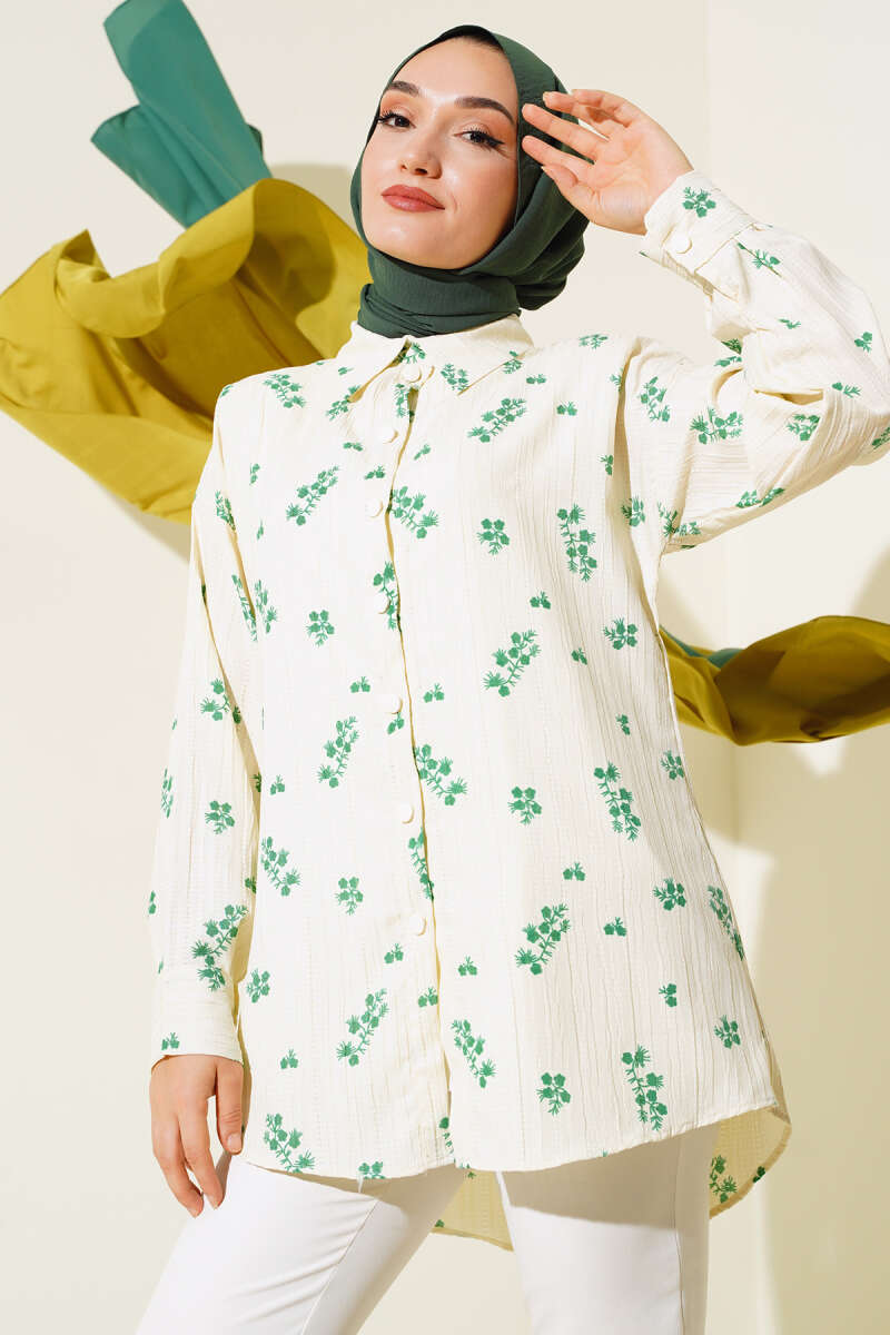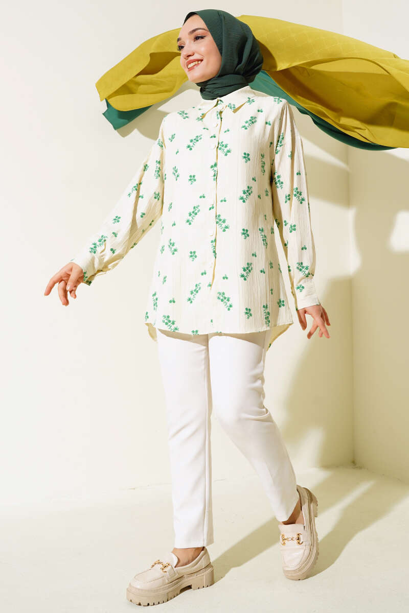 Yaka Bağlamalı Saten Gömlek Yeşil