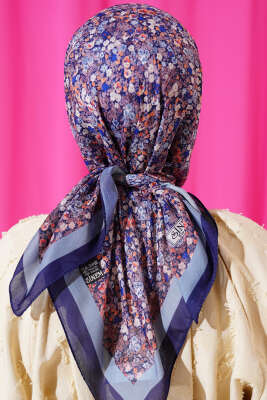 Çiçek Desenli Bambu Kraş Şal Soft Mavi