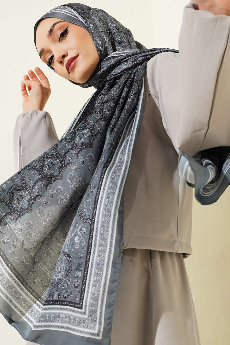 Van Gogh Serisi Modal Eşarp Gri