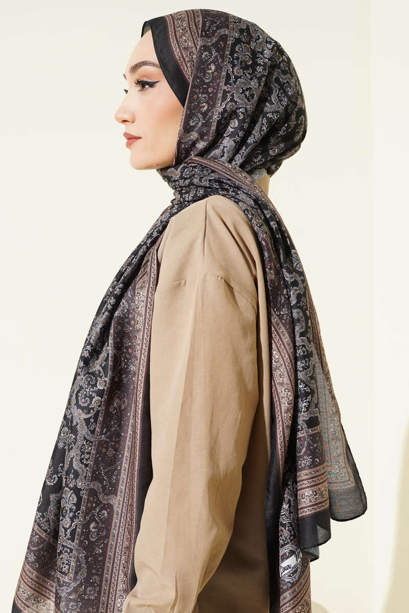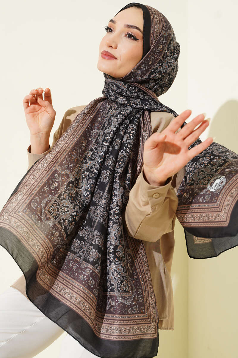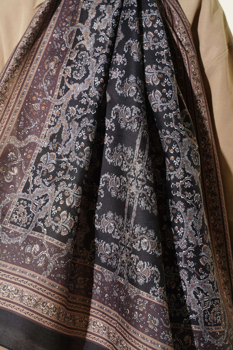Minik Çiçek Motifli Soft Şal Siyah Ekru