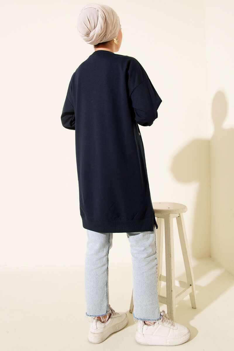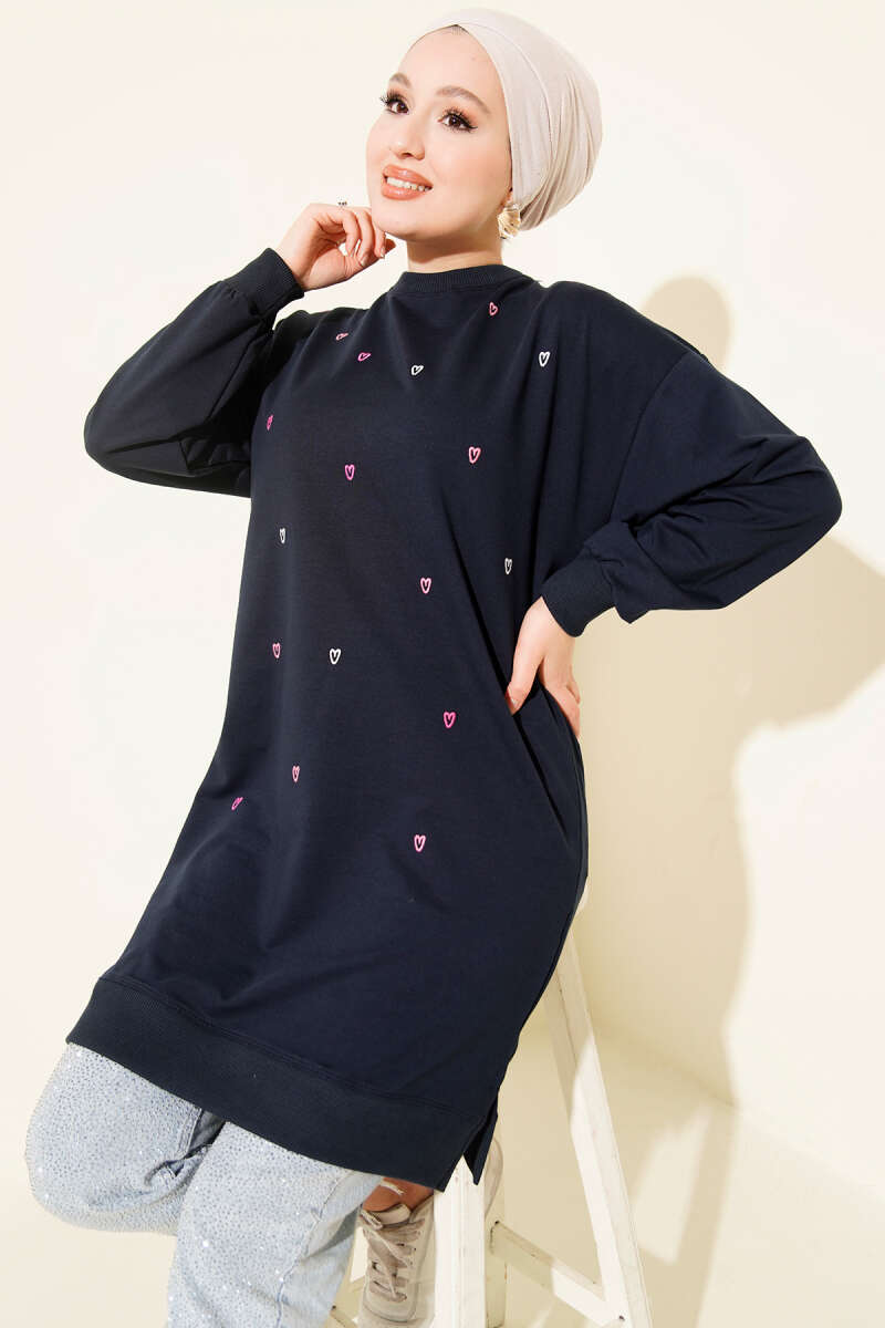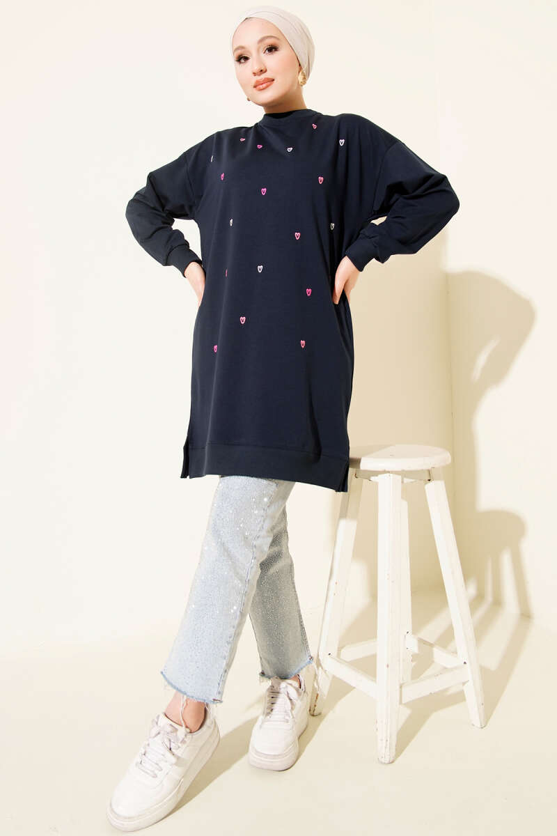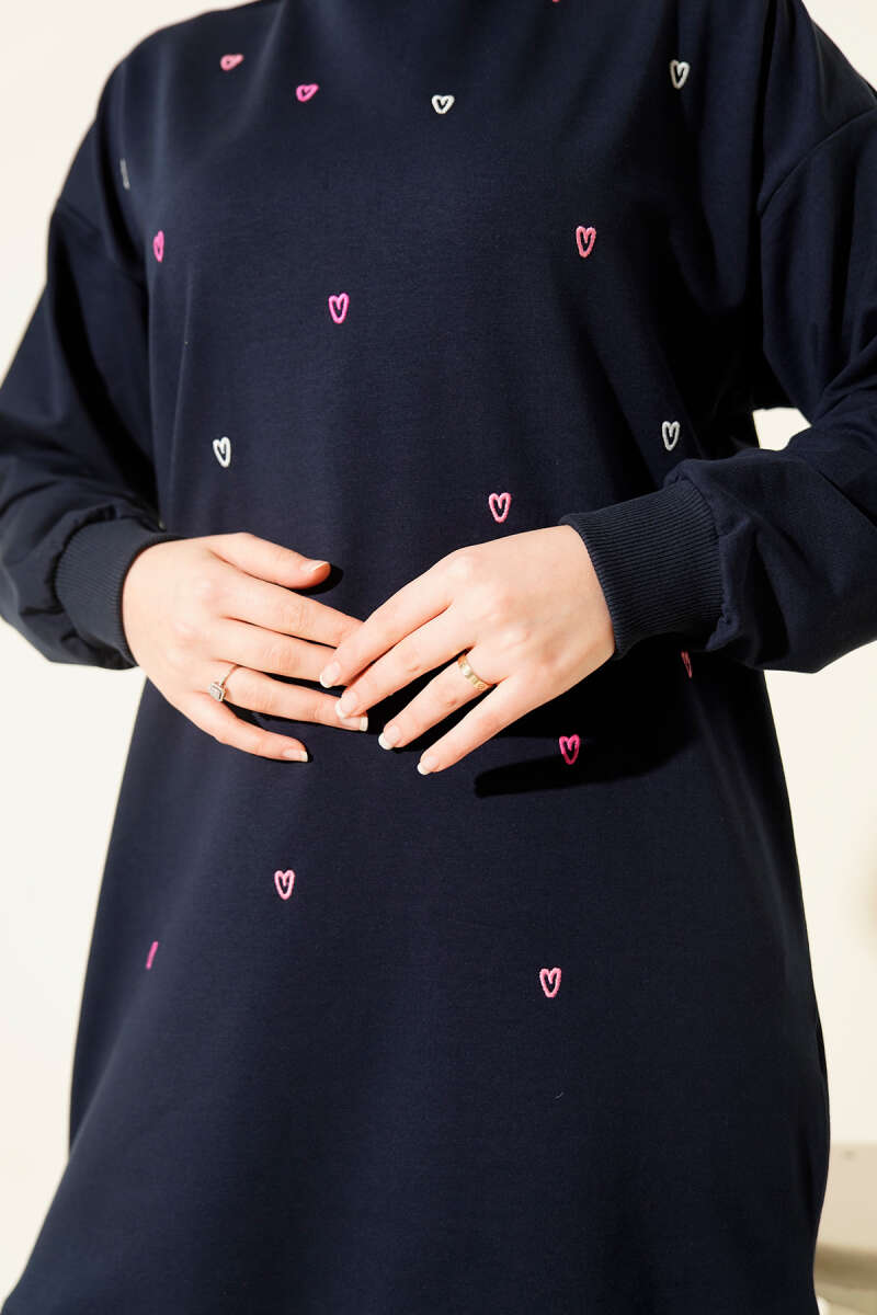 Minik Kalp Nakışlı Tunik Mavi