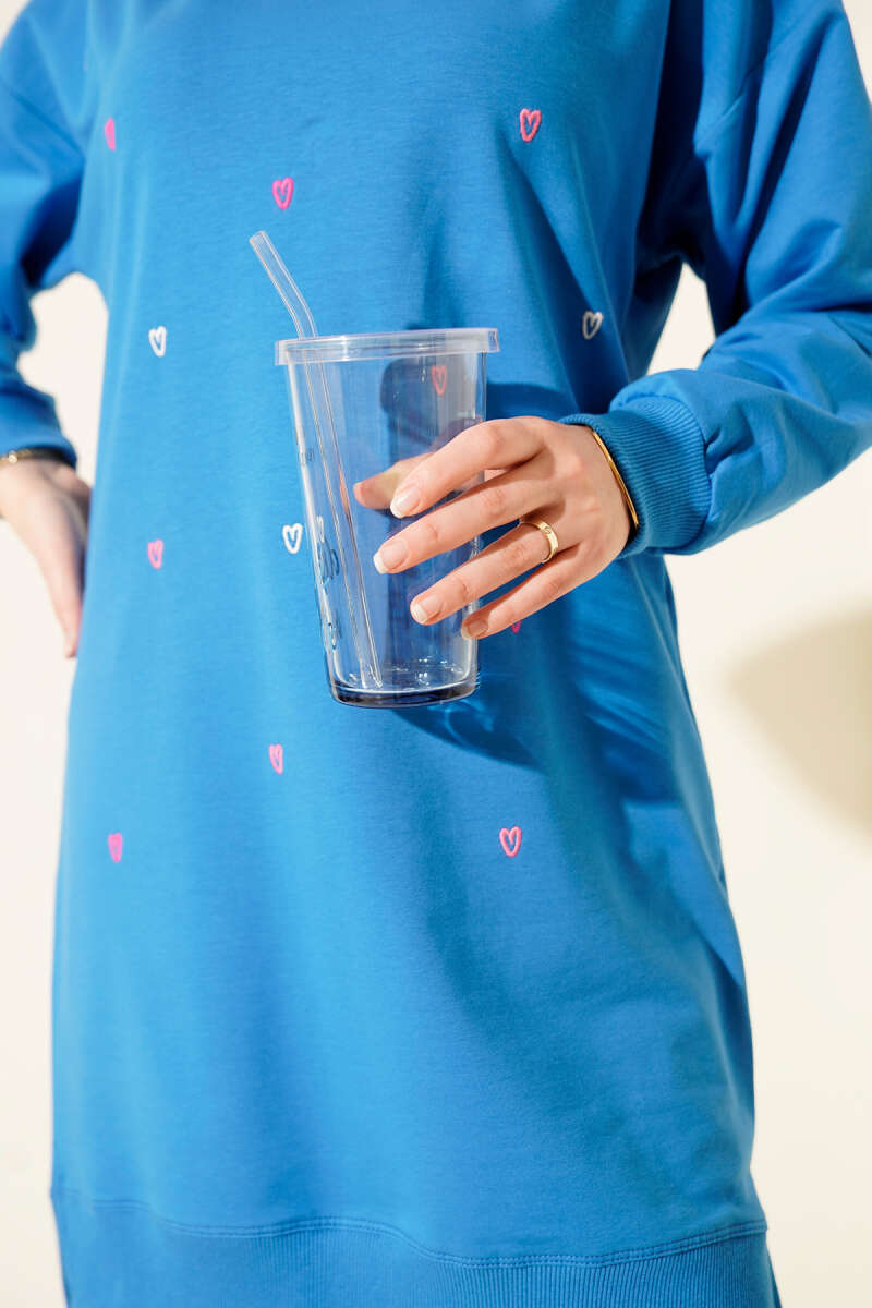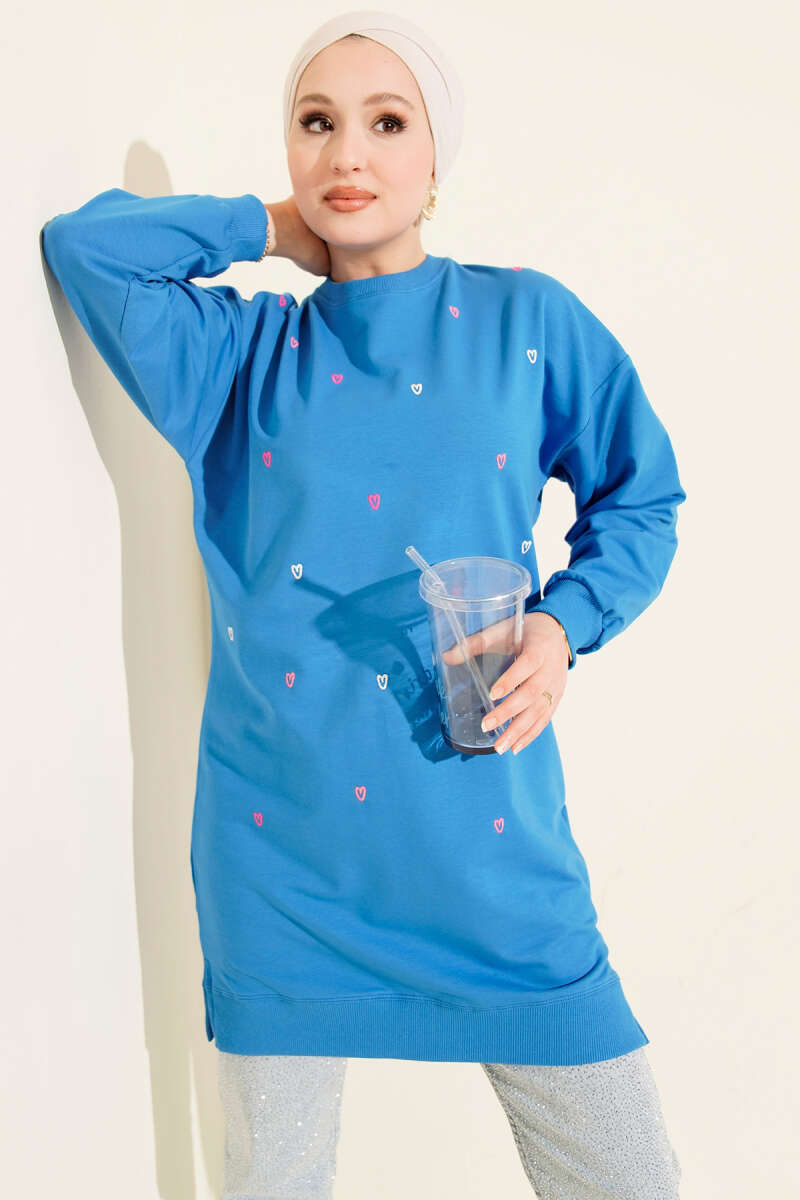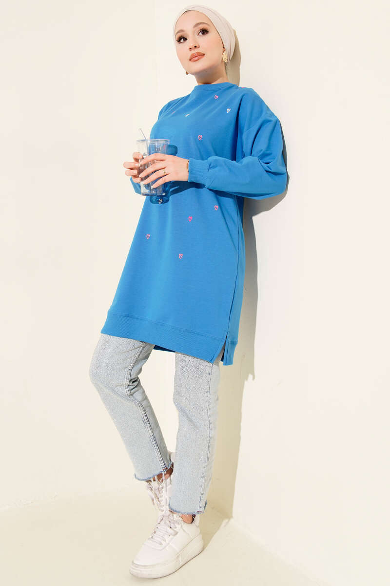 Minik Kalp Nakışlı Tunik Çağla Yeşili