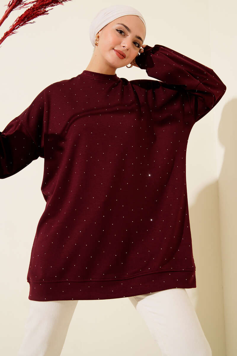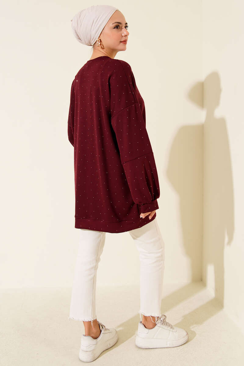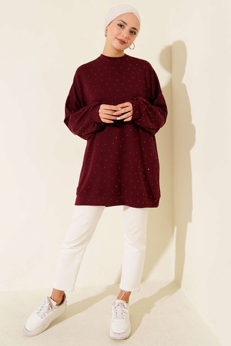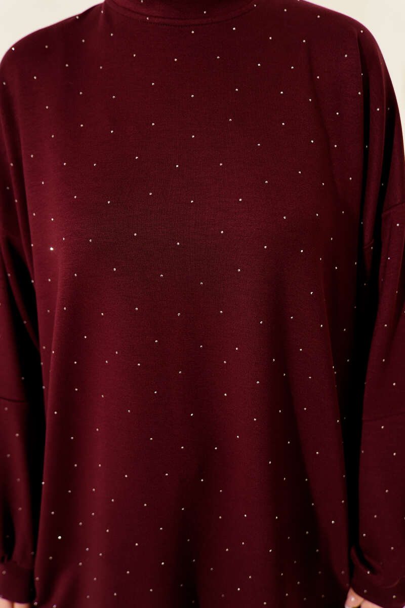 Sarmal Kabartmalı Yumoş Triko Tunik Bordo