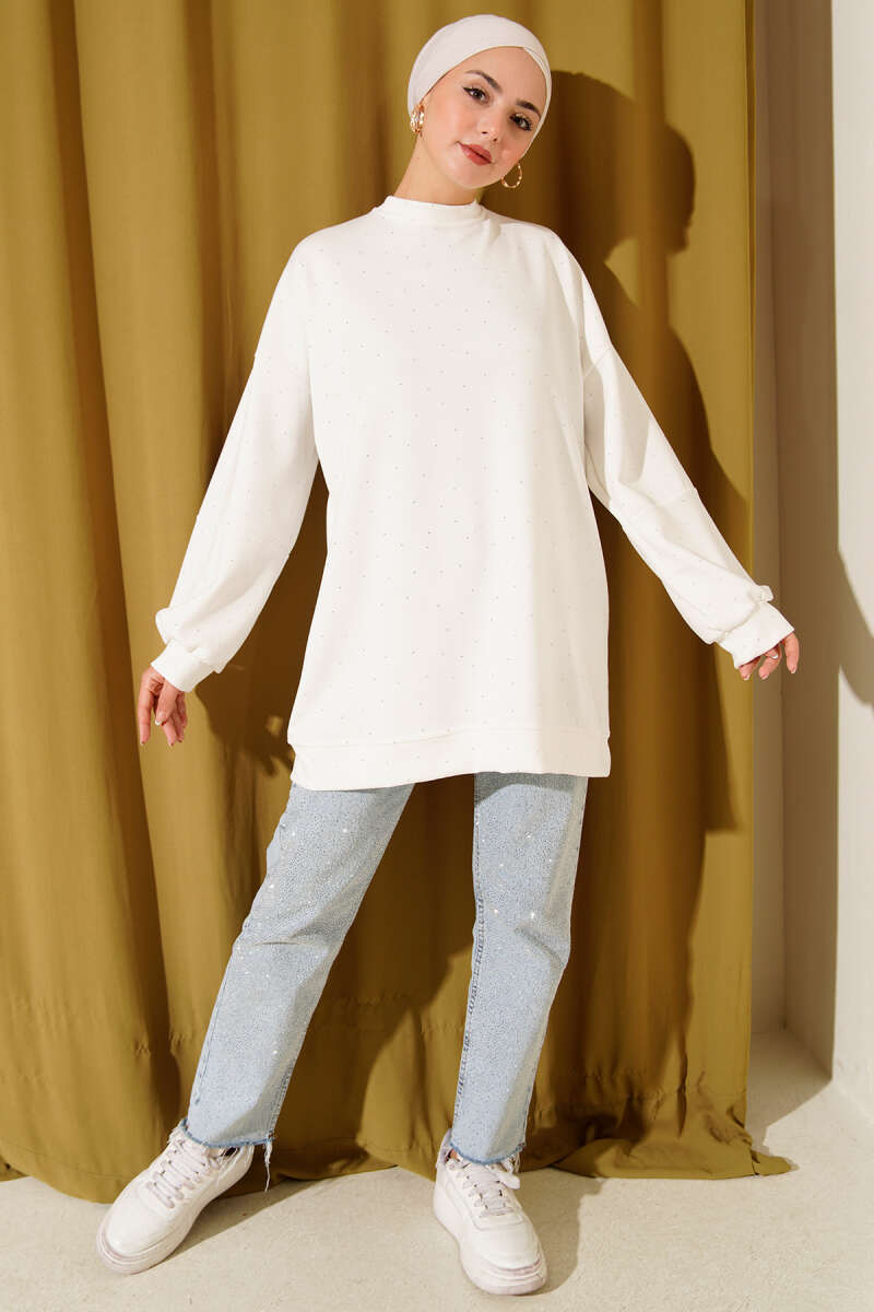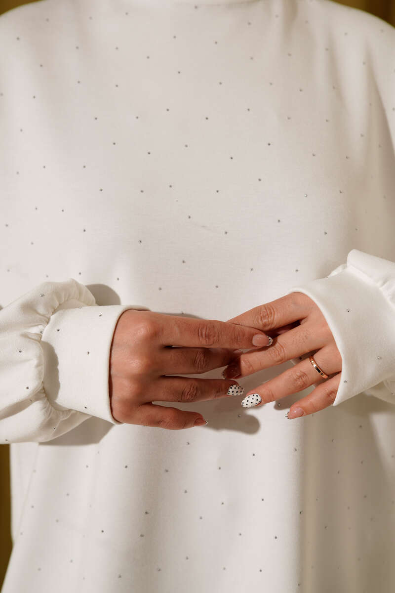 Minik Taş Süslemeli Loyşa Tunik Ekru