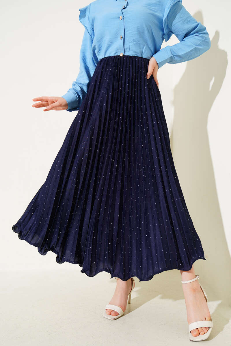 Kabartma Şeritli Taşlı Triko İkili Takım Nefti