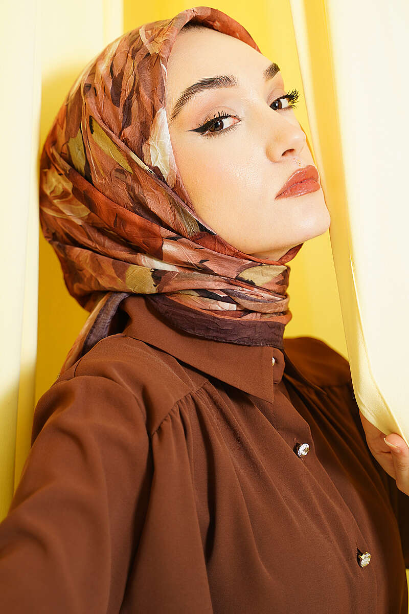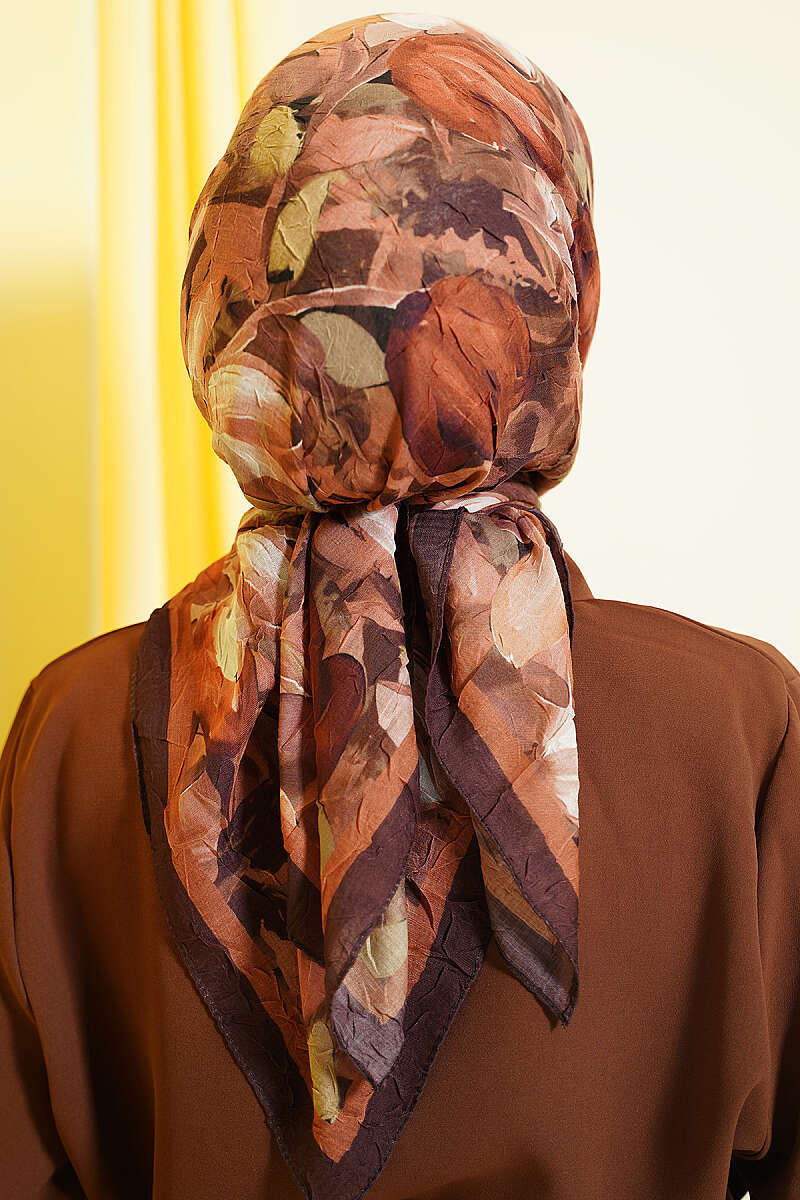 Mist Ebruli Desen Bambu Kraş Eşarp Acı Kahve