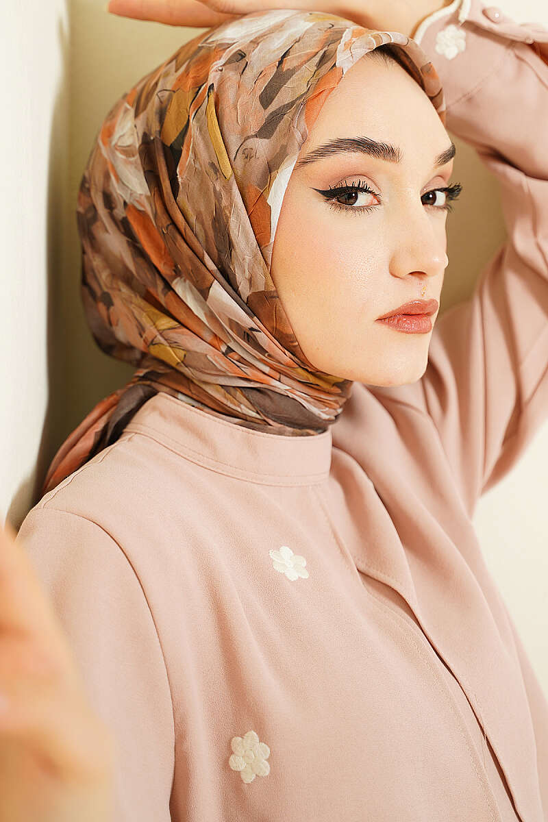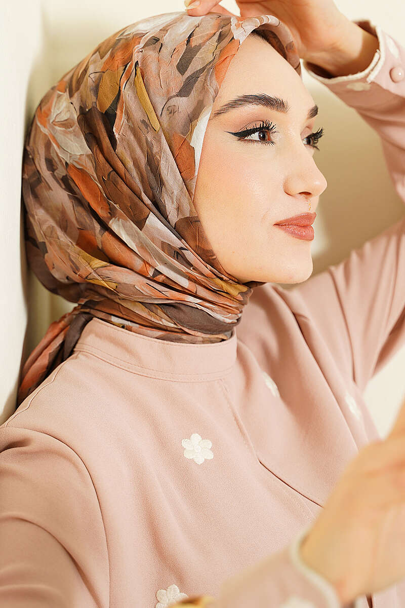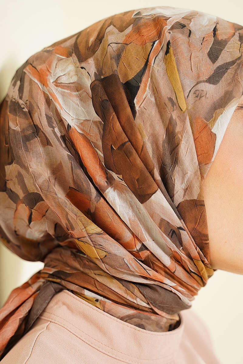 Lale Desen Bambu Kraş Eşarp Soft Kahve