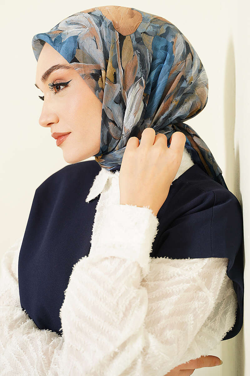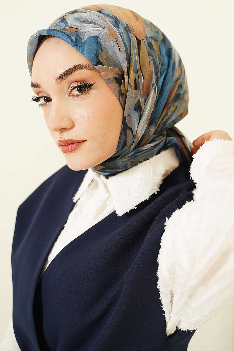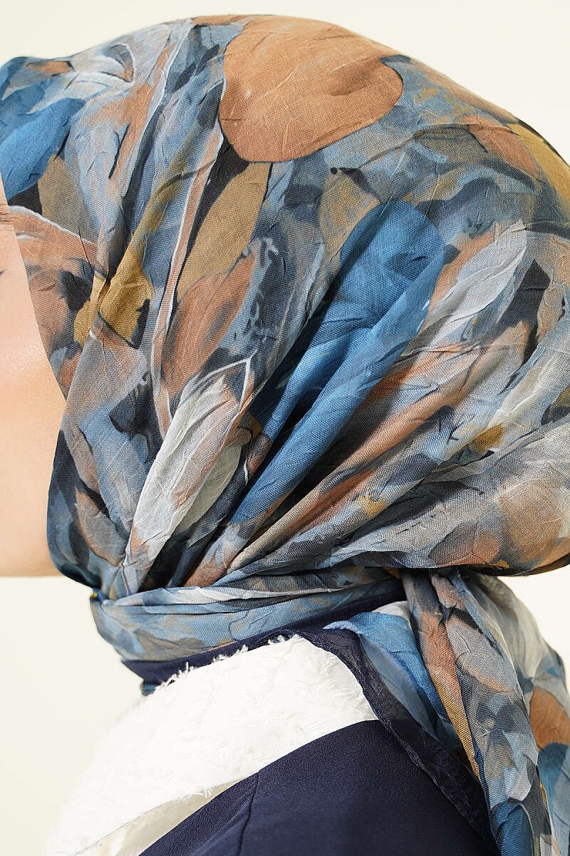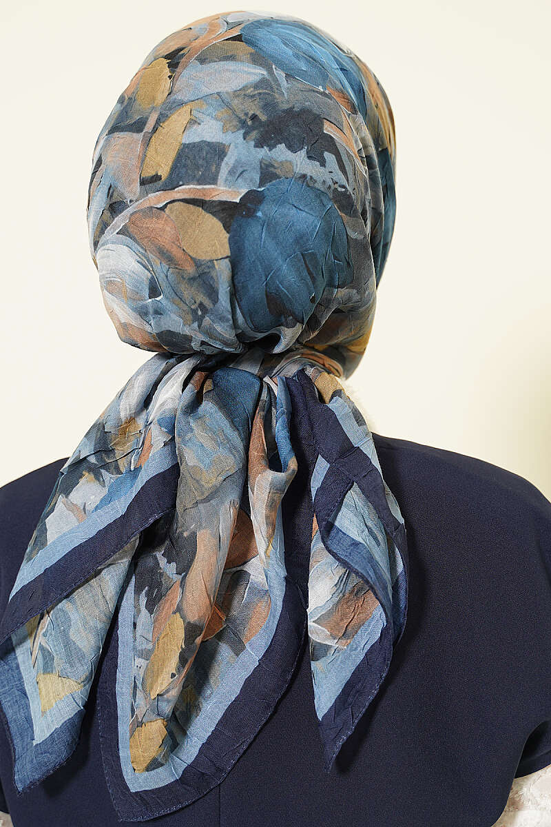 Mist Ebruli Desen Bambu Kraş Eşarp Lacivert