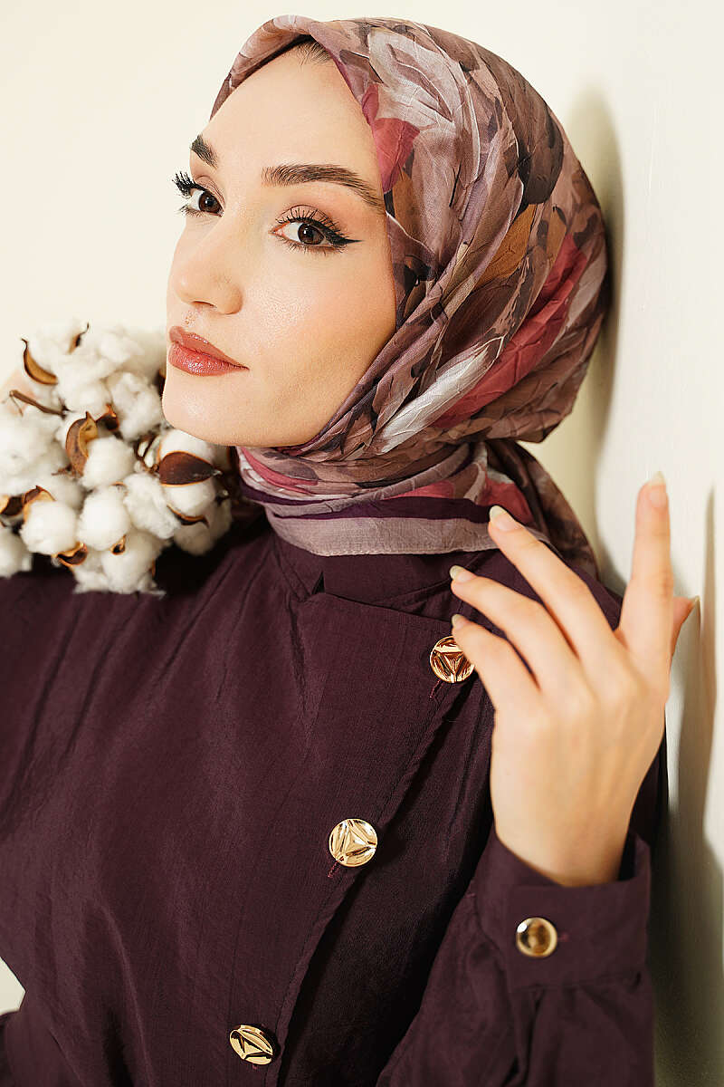 Lale Desen Bambu Kraş Eşarp Soft Kahve