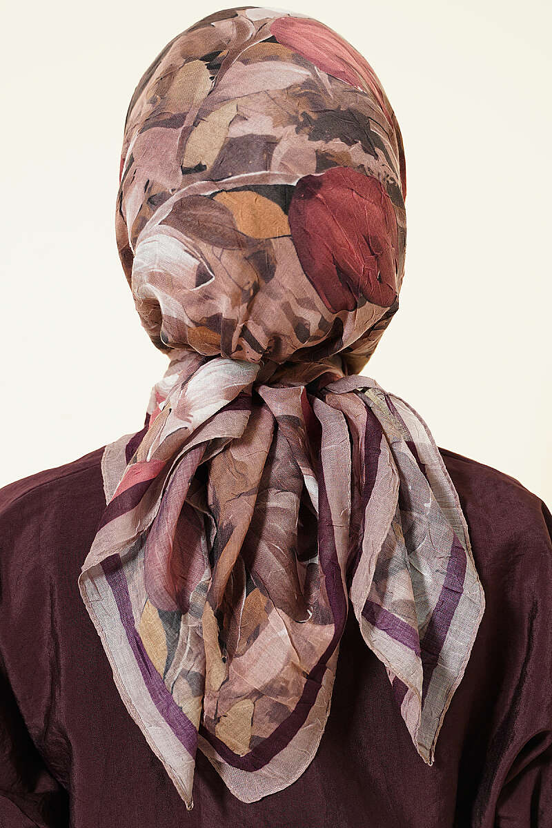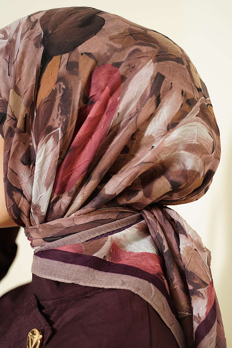 Mist Ebruli Desen Bambu Kraş Eşarp Mocha