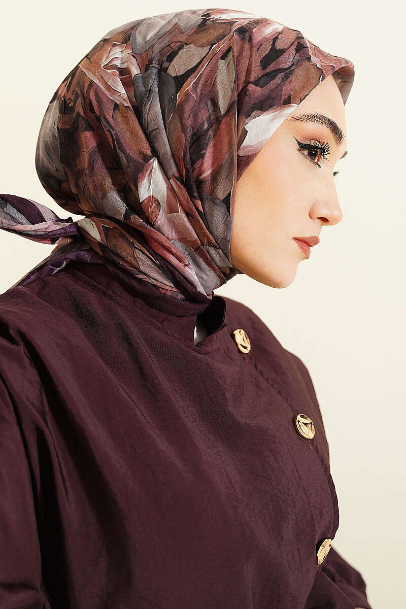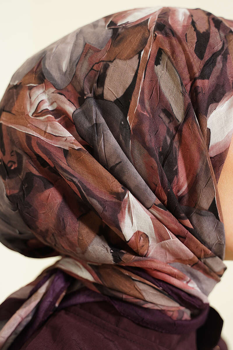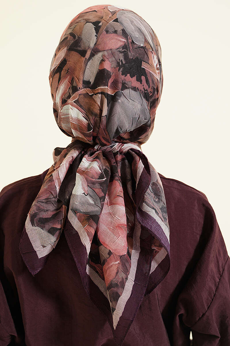Mist Ebruli Desen Bambu Kraş Eşarp Mor