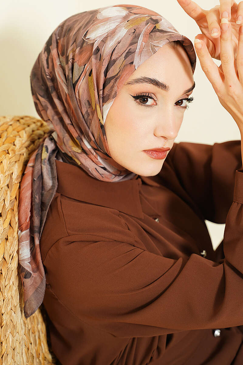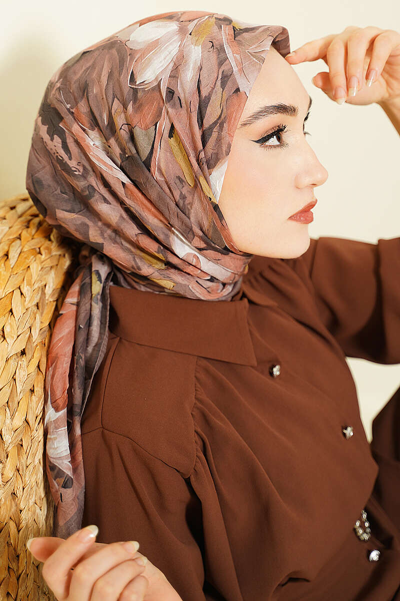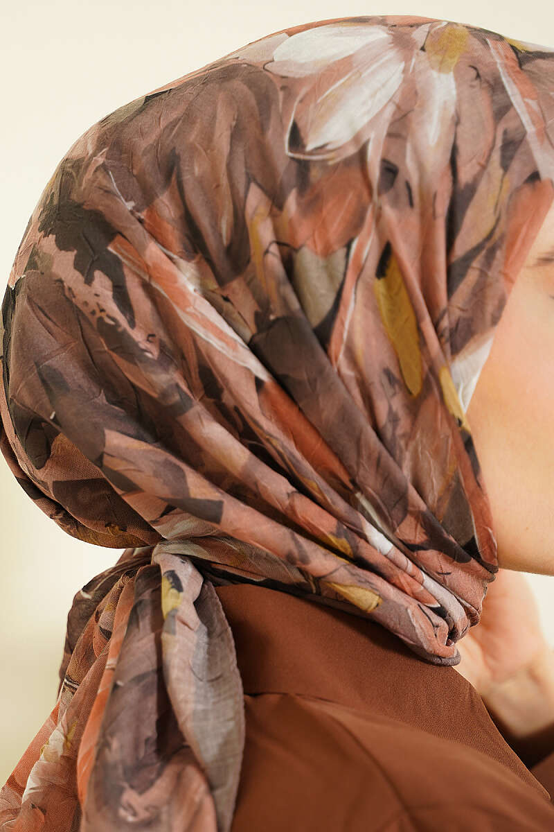 Lale Desen Bambu Kraş Eşarp Soft Kahve