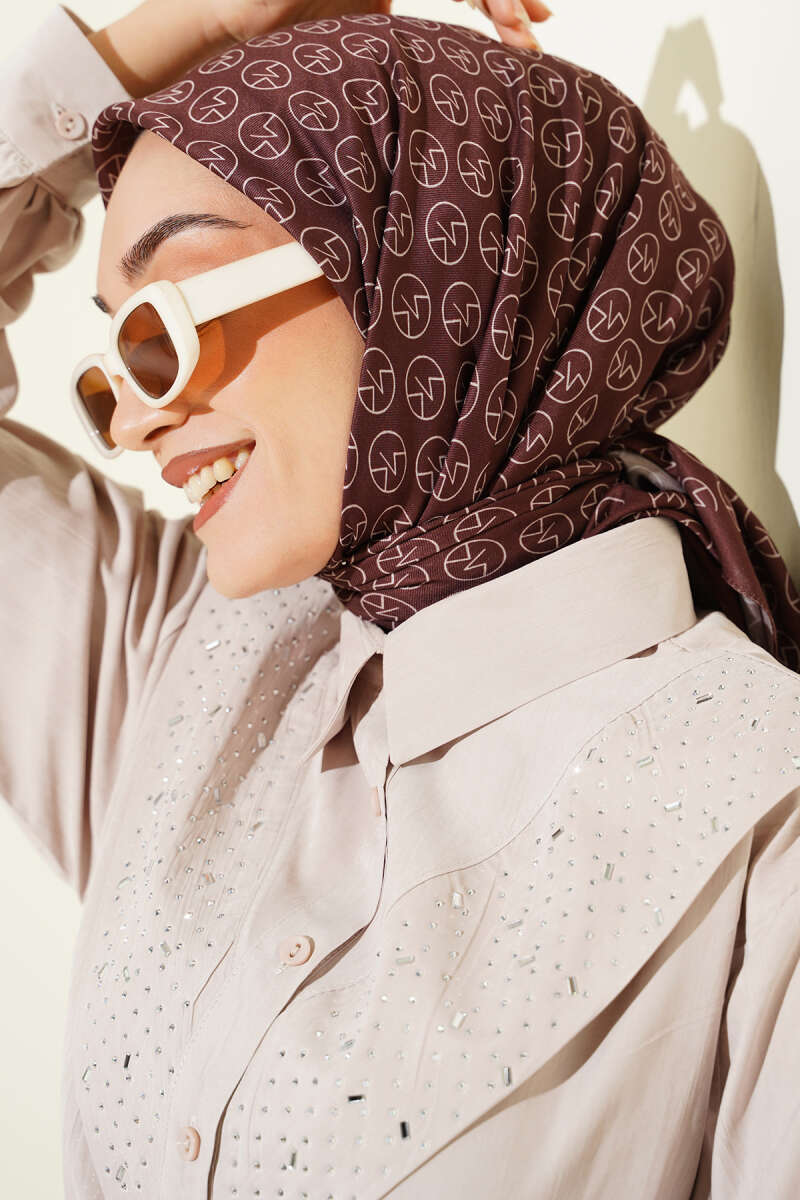 MK Desen Soft Eşarp Koyu Kahve