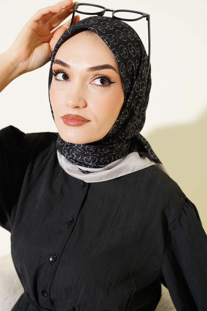 MK Desen Soft Eşarp Siyah Taş