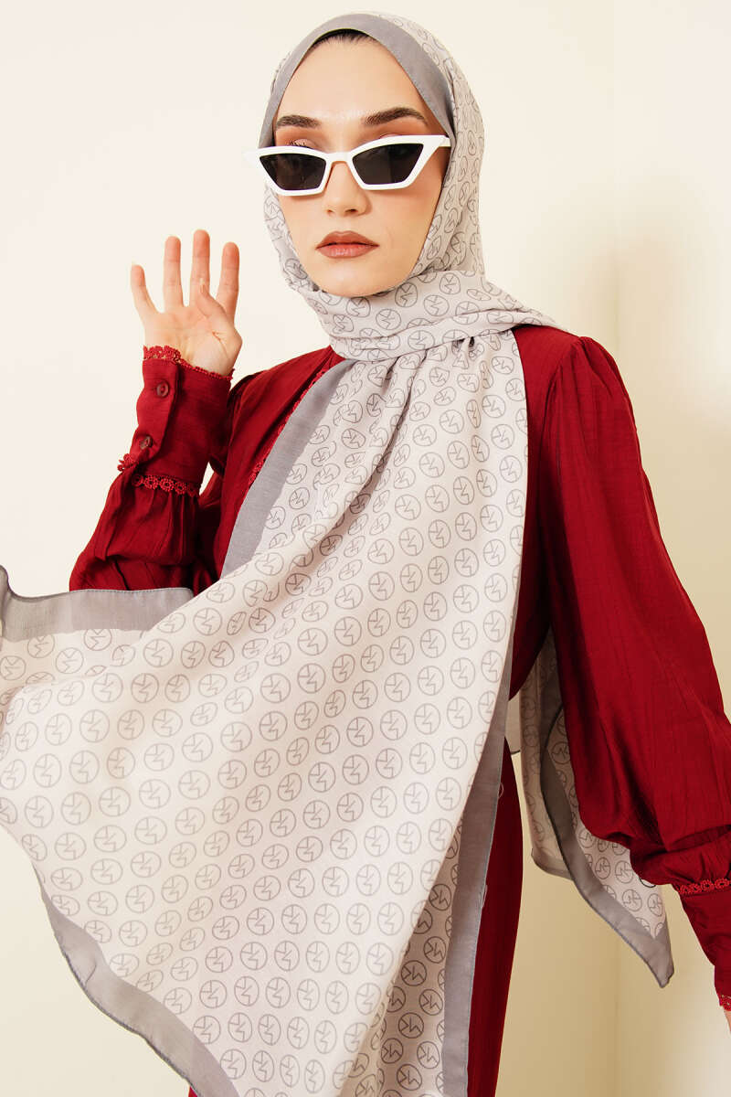 Eskiz Çiçek Desen Eşarp Vizon