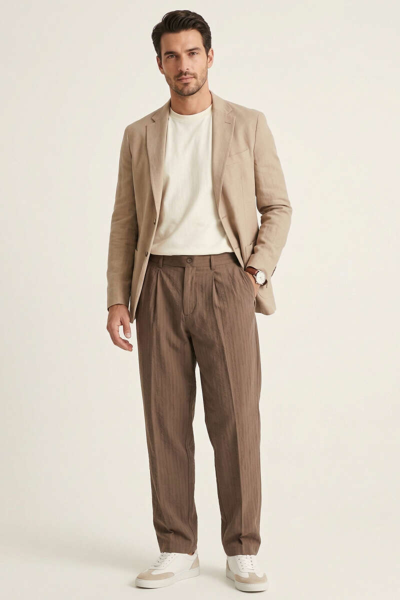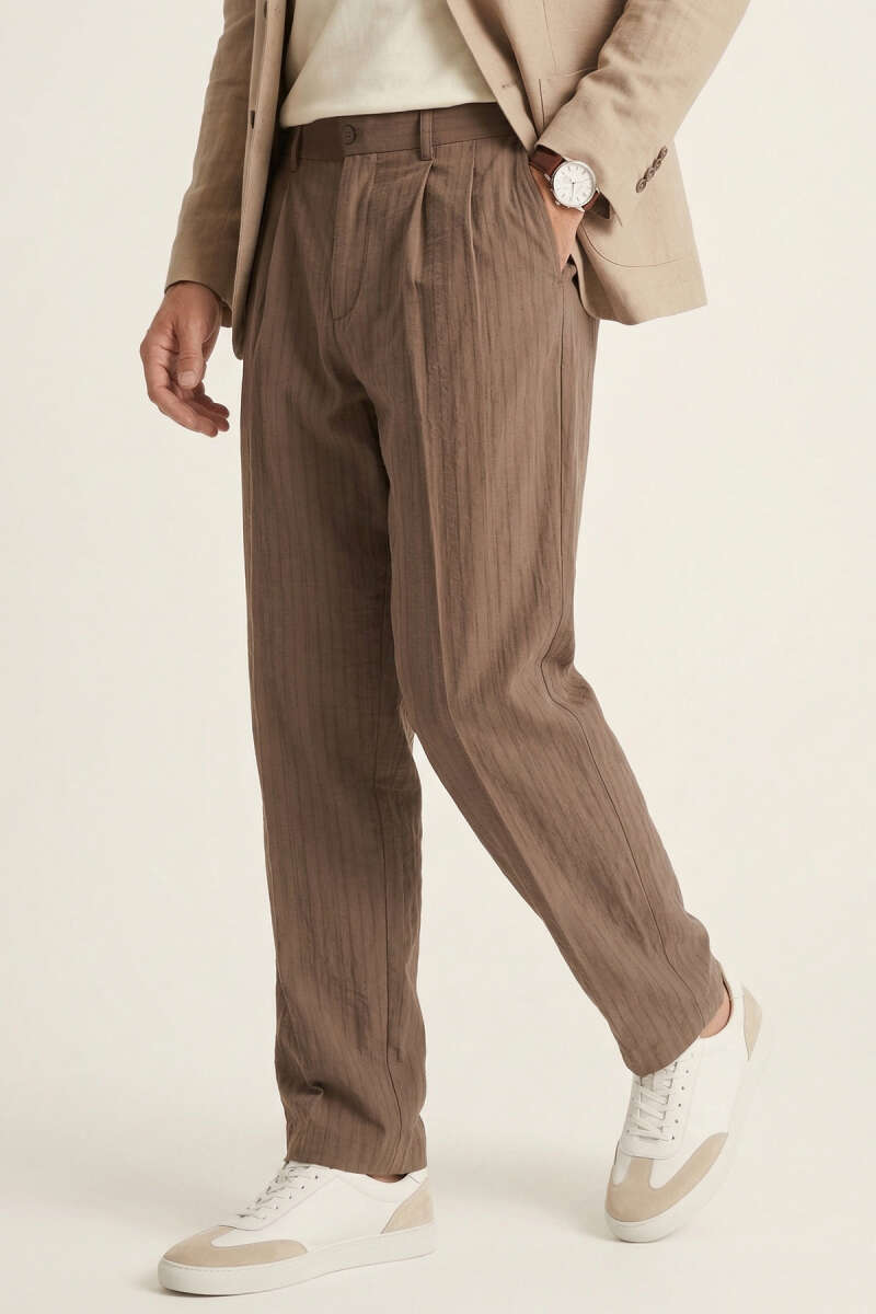 Modal Çizgili Bol Erkek Pantolon Kahve
