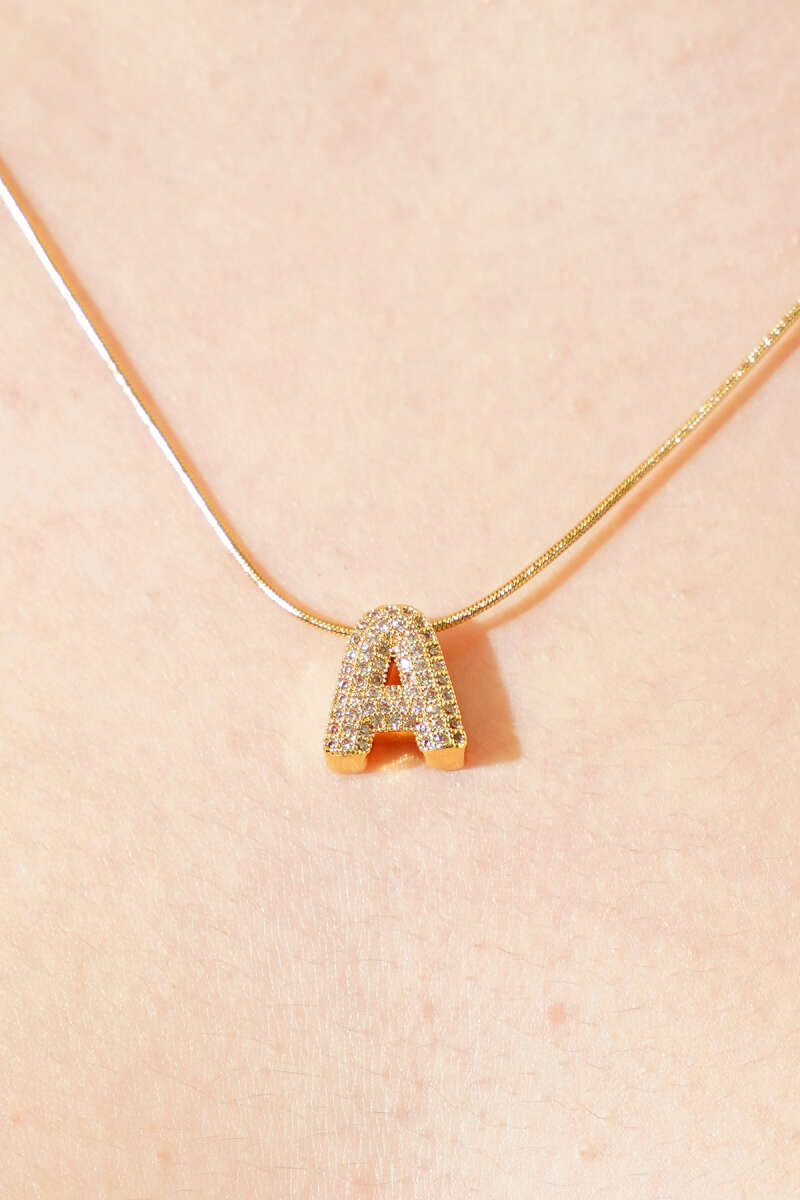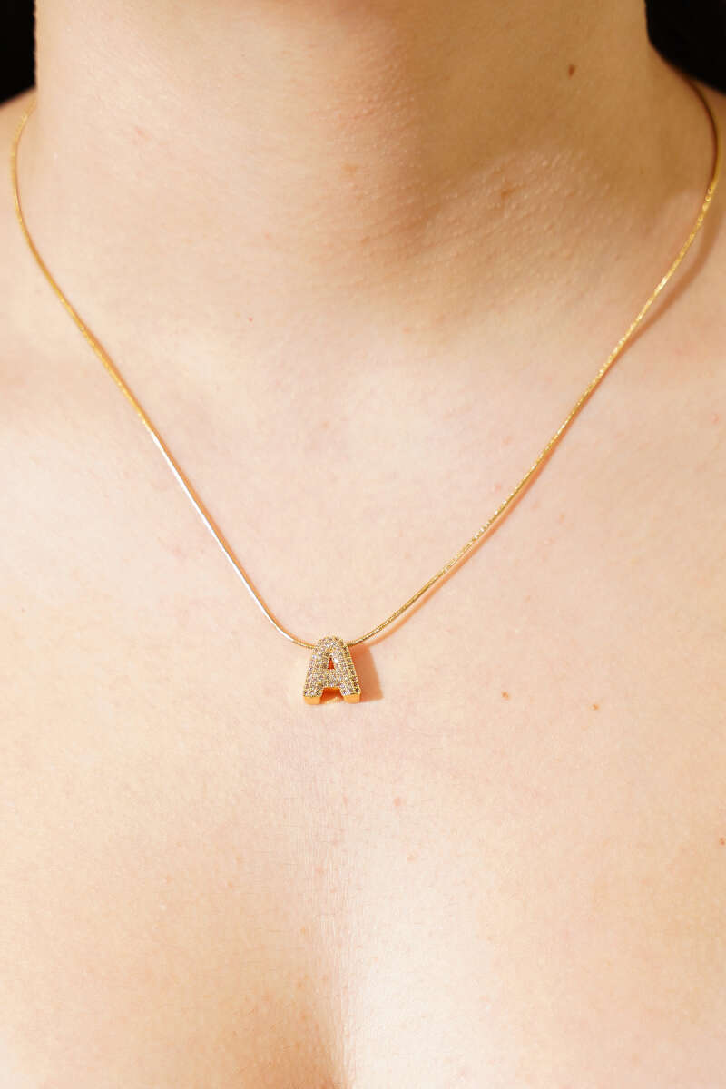 Modern A Harfi Taş İşlemeli Kolye Gold