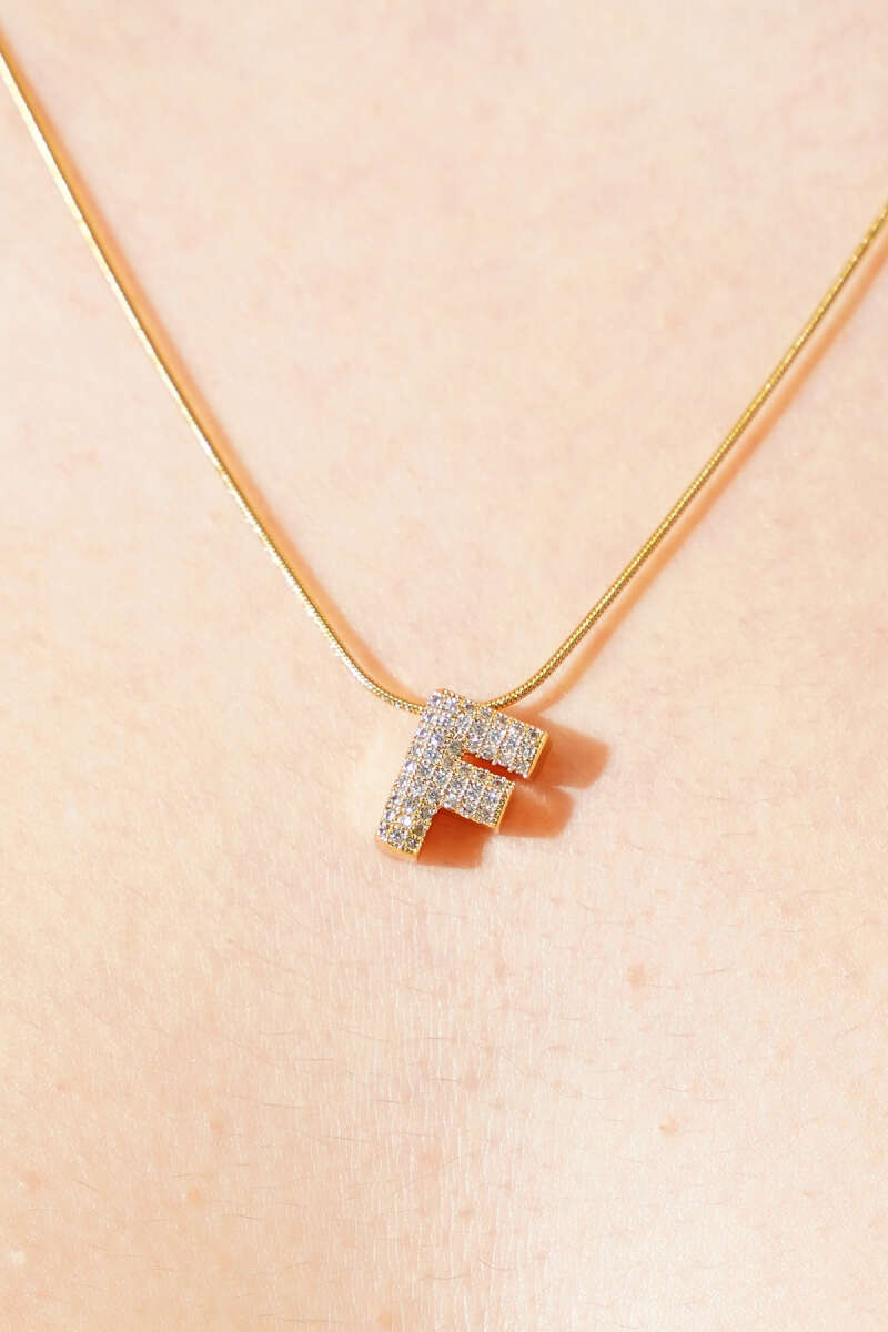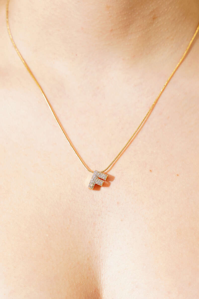 Modern F Harfi Taş İşlemeli Kolye Gold