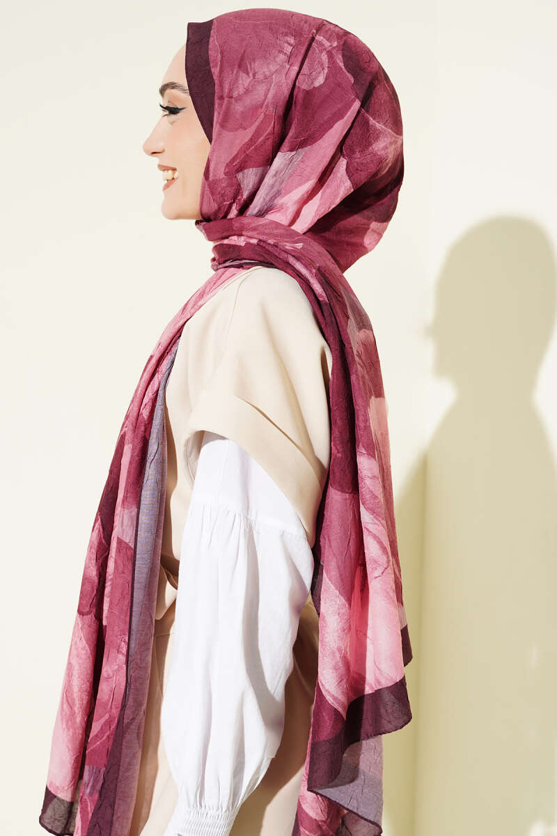 Modern Floral Desen Bambu Kraş Şal Bordo