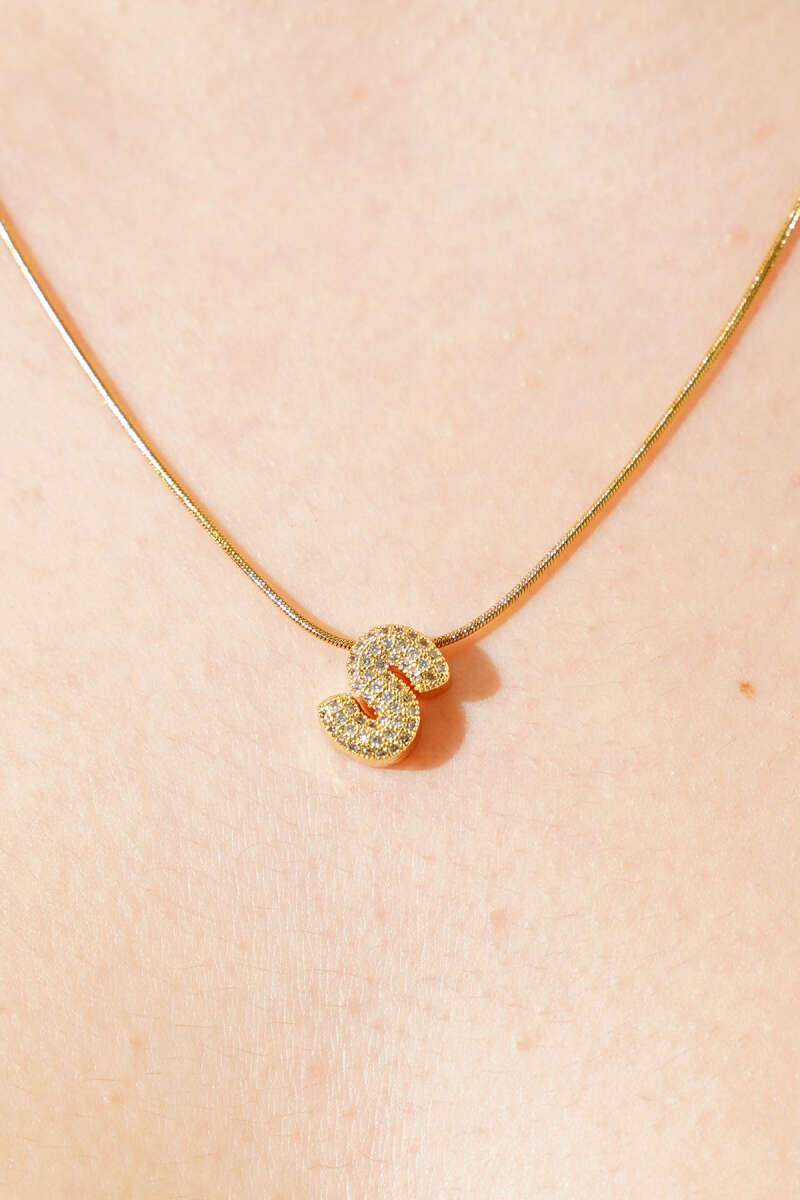 Modern S Harfi Taş İşlemeli Kolye Gold