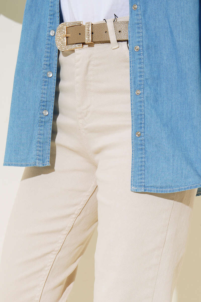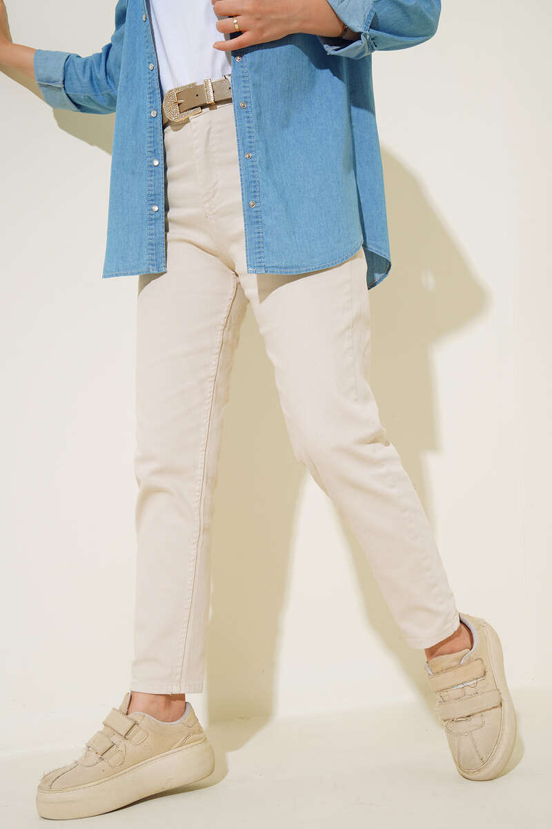 Yeni sezon kot pantolonumuz dar paça yapısıyla bacaklarınıza tam oturacaktır. Bel kısmında 5 kemer köprüsü bulunmaktadır. Pantolonumuzun yanlarında ve arkasında cepler bulunmaktadır.