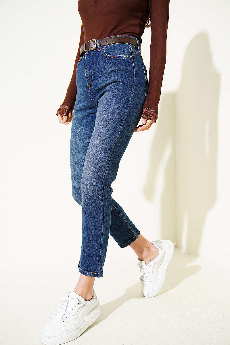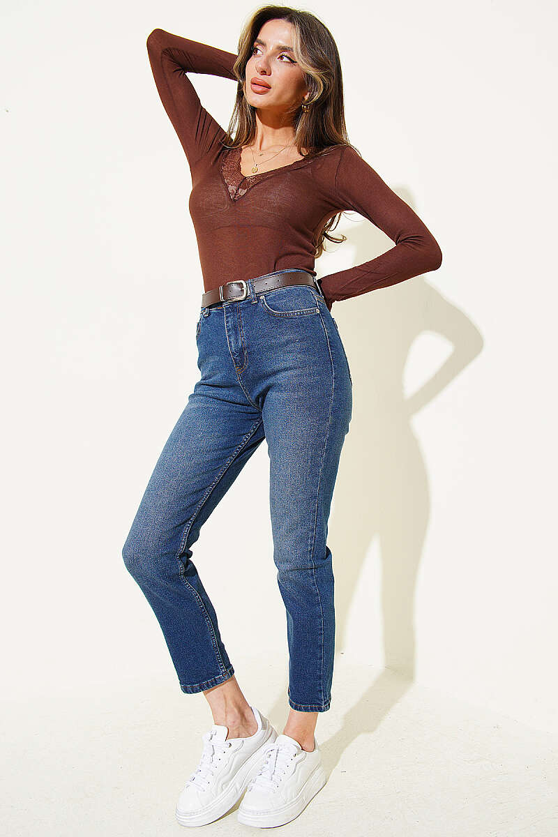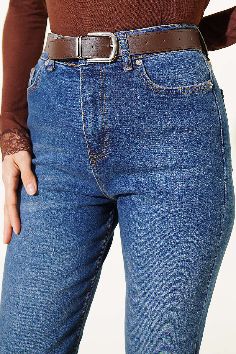 Cepli Kemer Detaylı Kot Pantolon Kahve