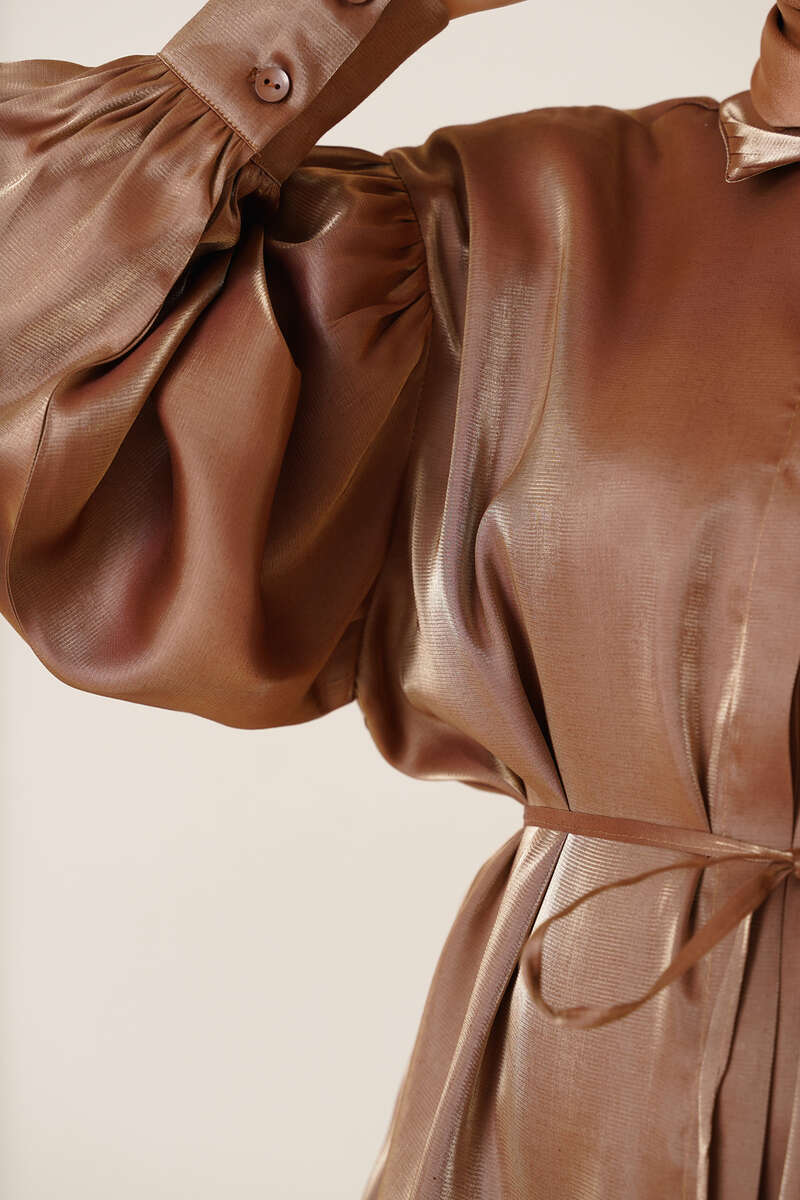 Yaka Bağlamalı Saten Gömlek Yeşil