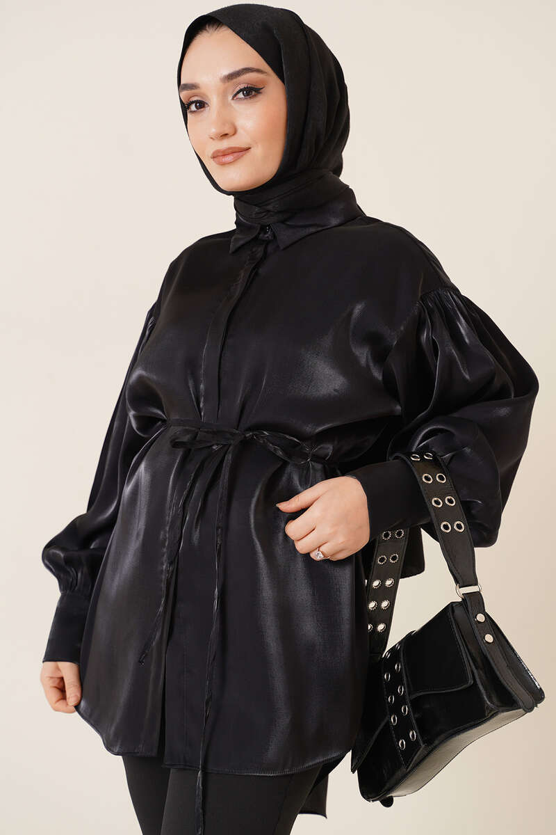 Yaka Bağlamalı Saten Gömlek Yeşil