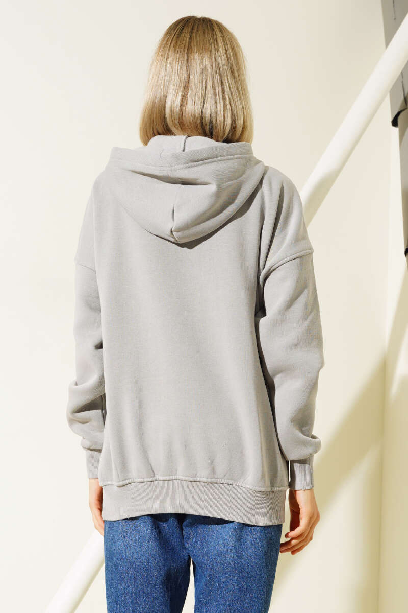 More Baskılı Şardonlu Sweatshirt Gri