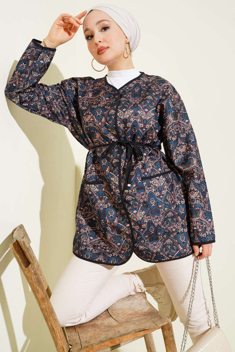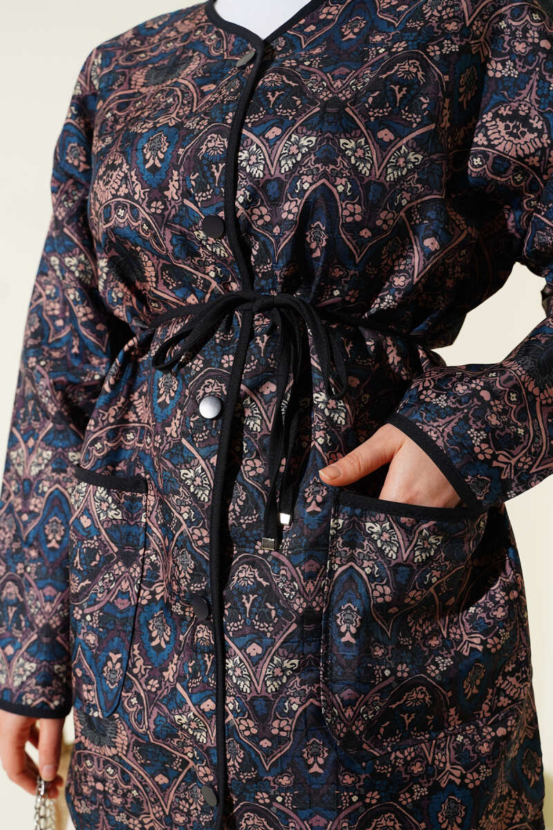Düğmeli Kuşaklı Basic Ceket Mürdüm