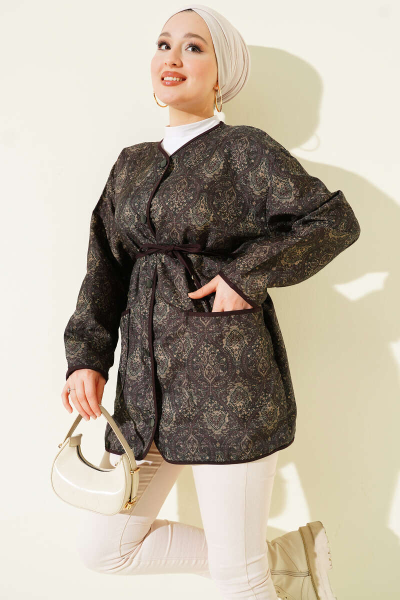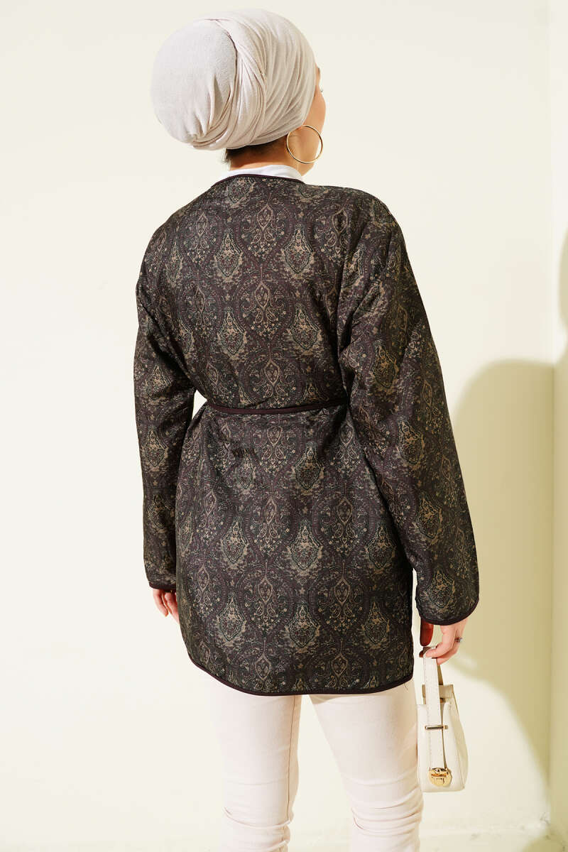 Düğmeli Kuşaklı Basic Ceket Mürdüm