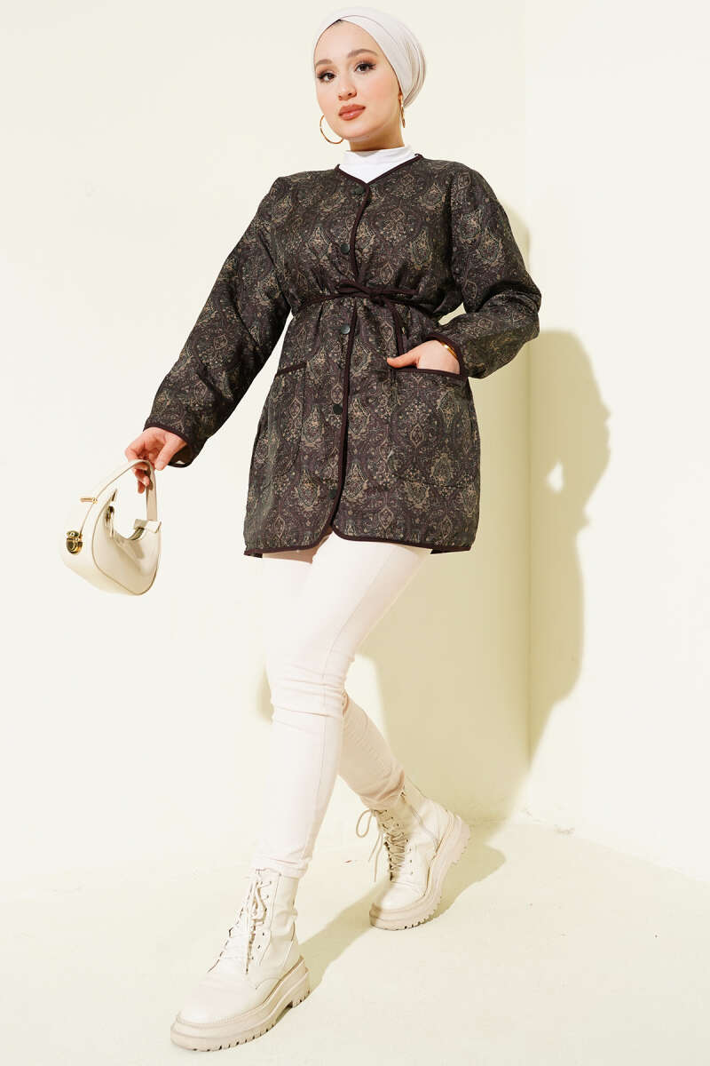 Motifli Çıtçıtlı Kapitone Ceket Lacivert