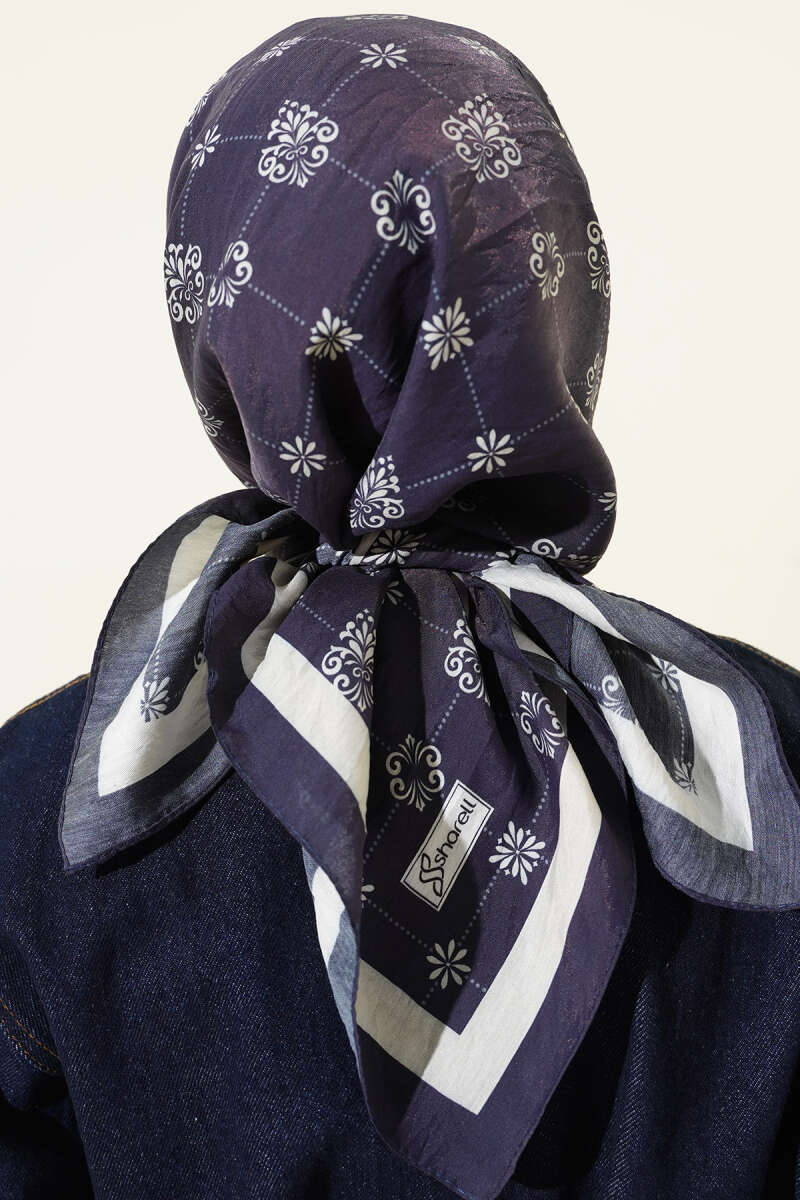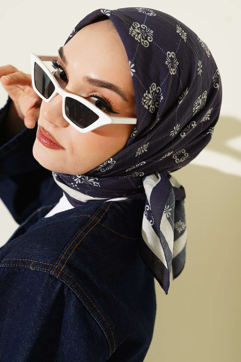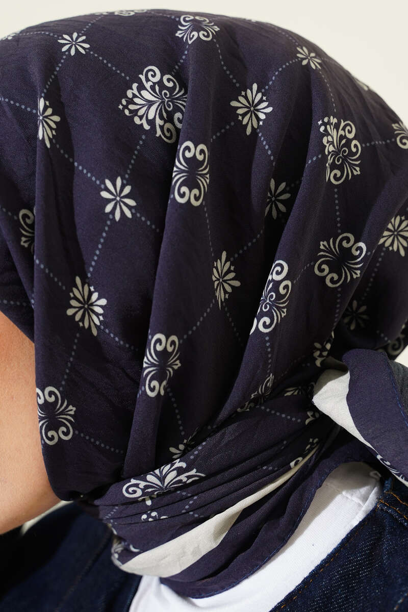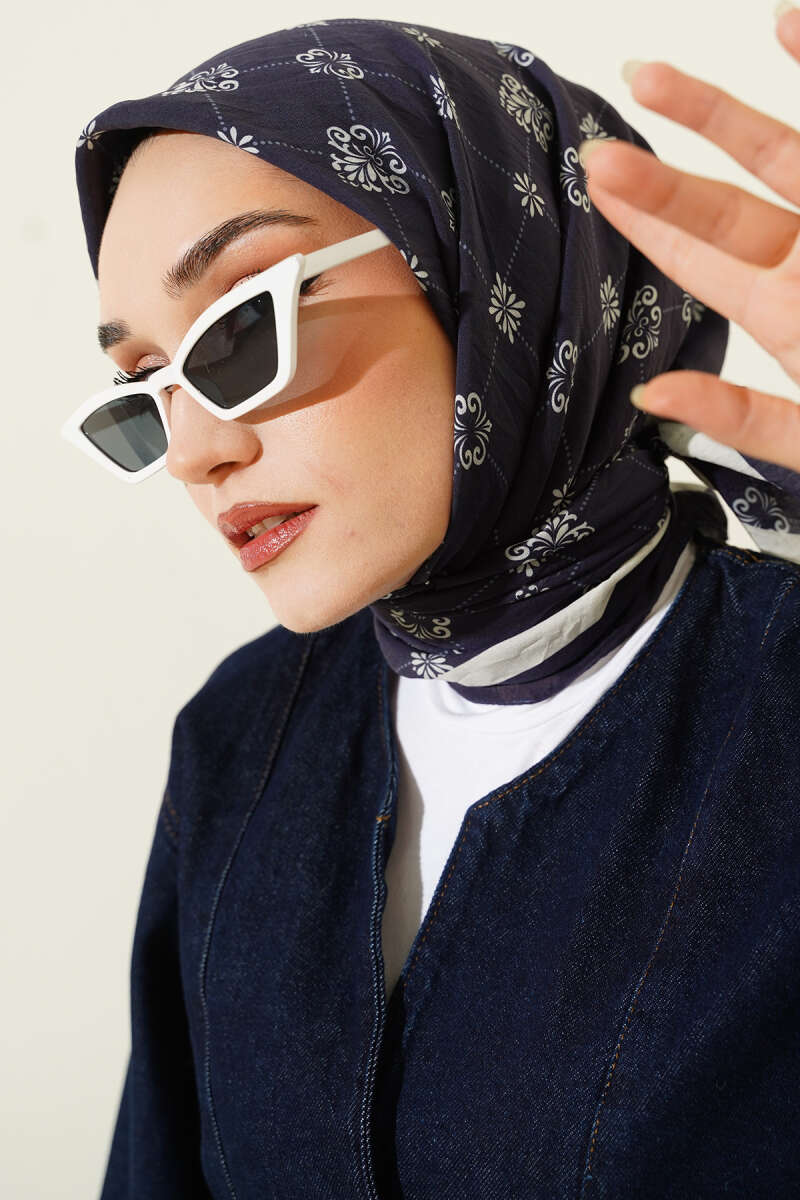 Şerit Geçişli Desenli Bambu Eşarp Lacivert
