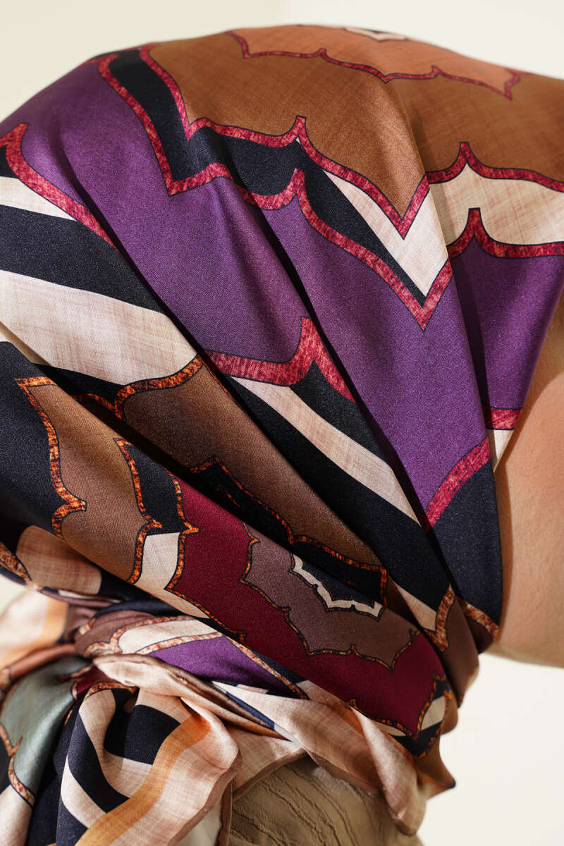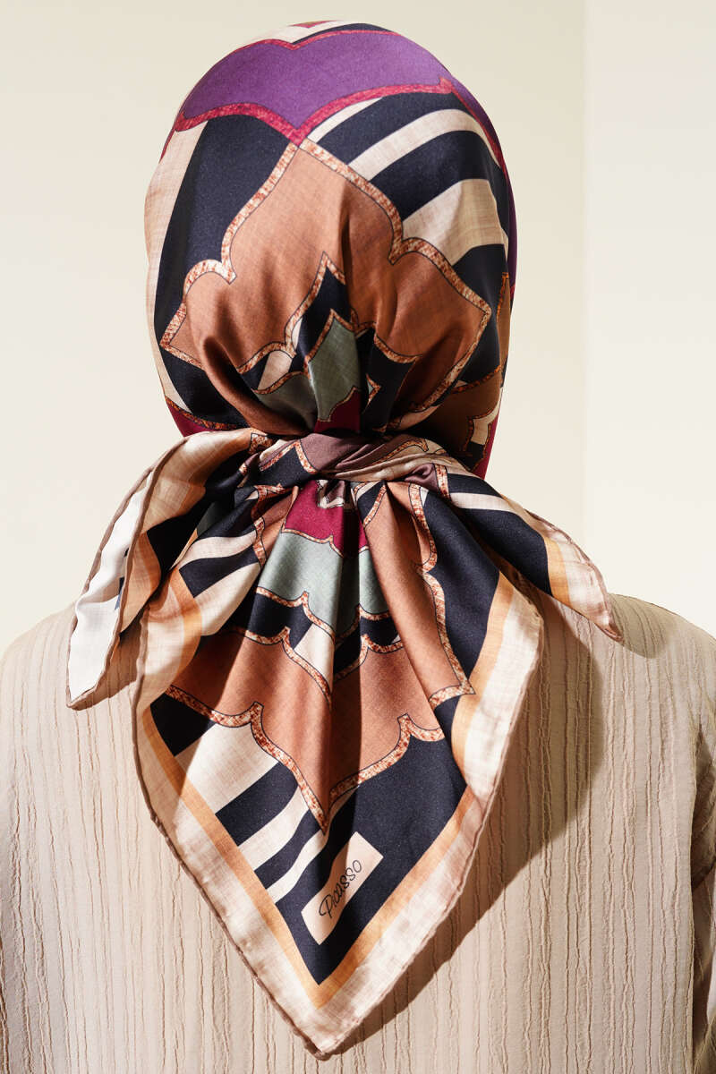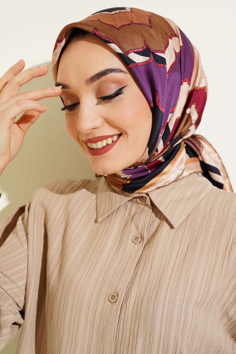 Motifli Rayon Eşarp Latte