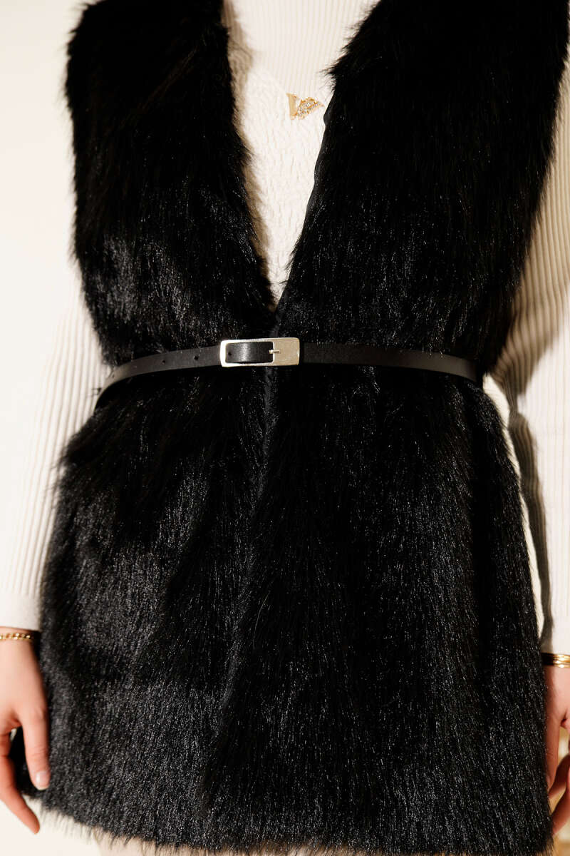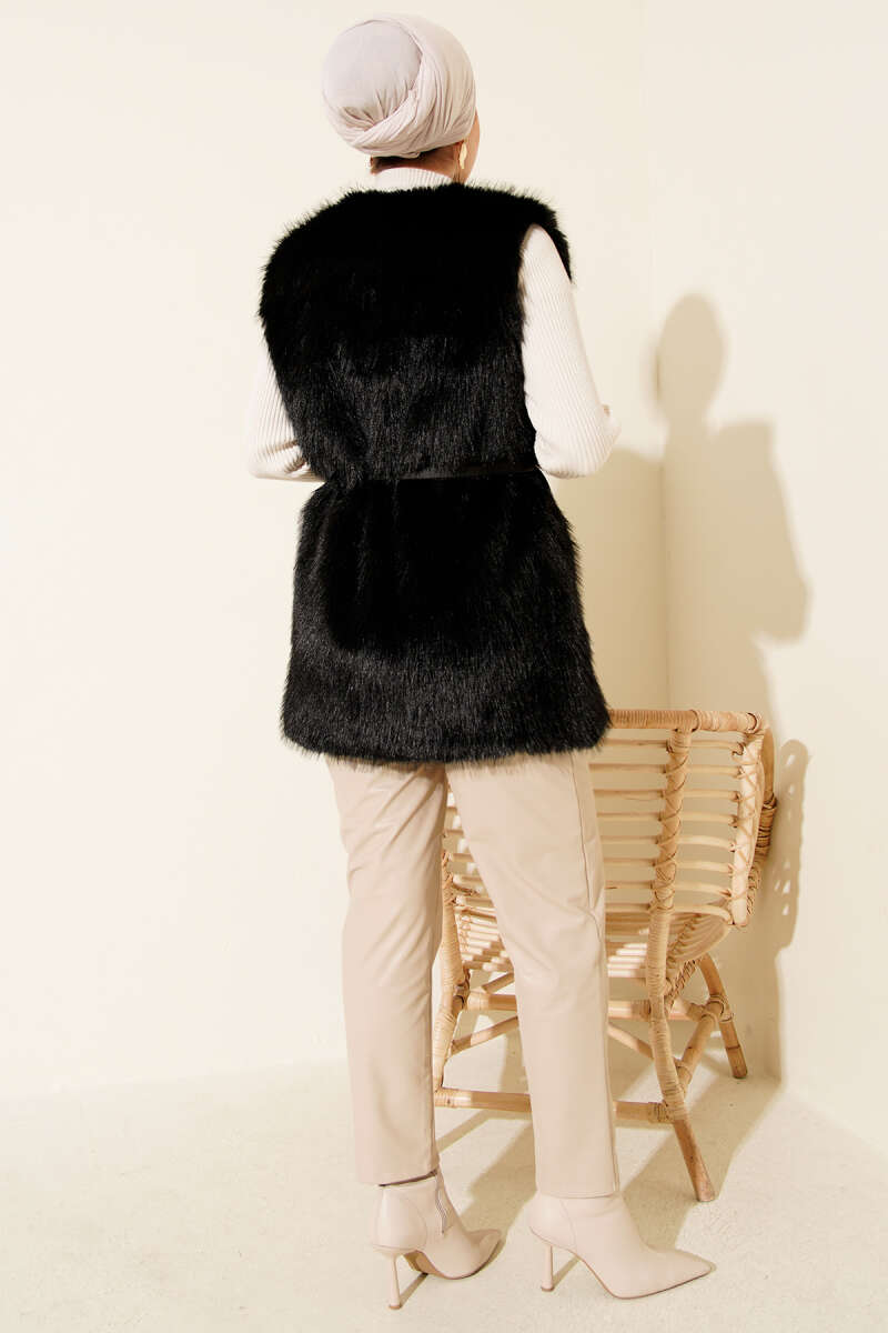 Astarlı Kuşaklı Uzun Trençkot Siyah