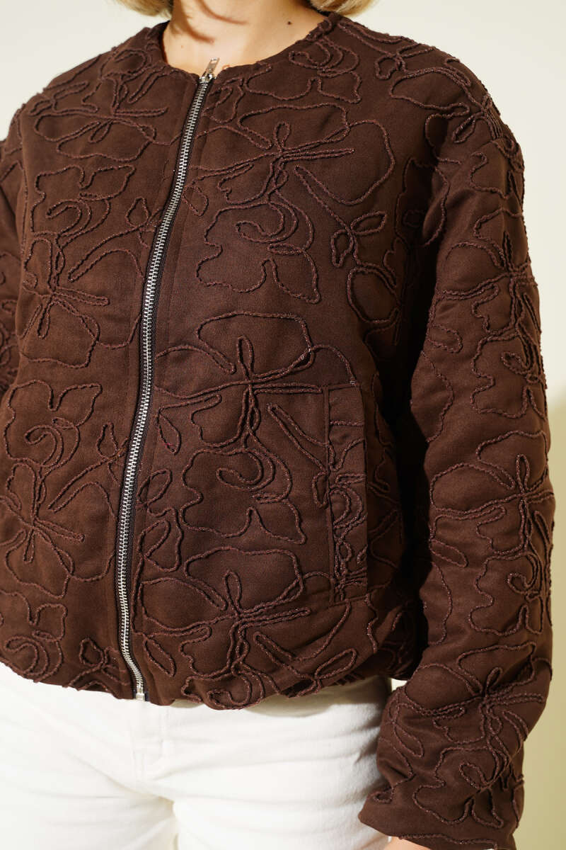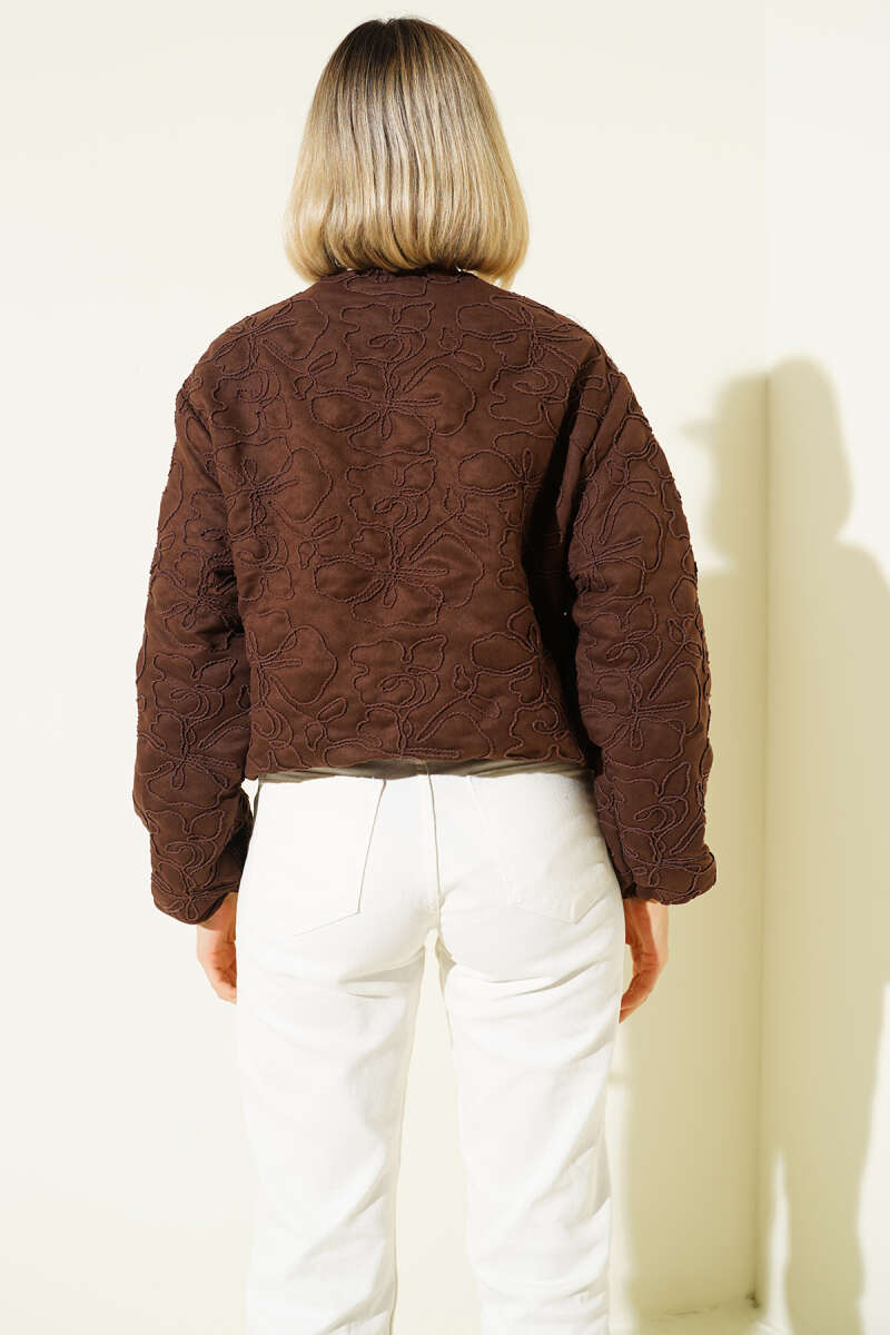 Kruvaze Yaka Düğmeli Kürklü Mont Kahve