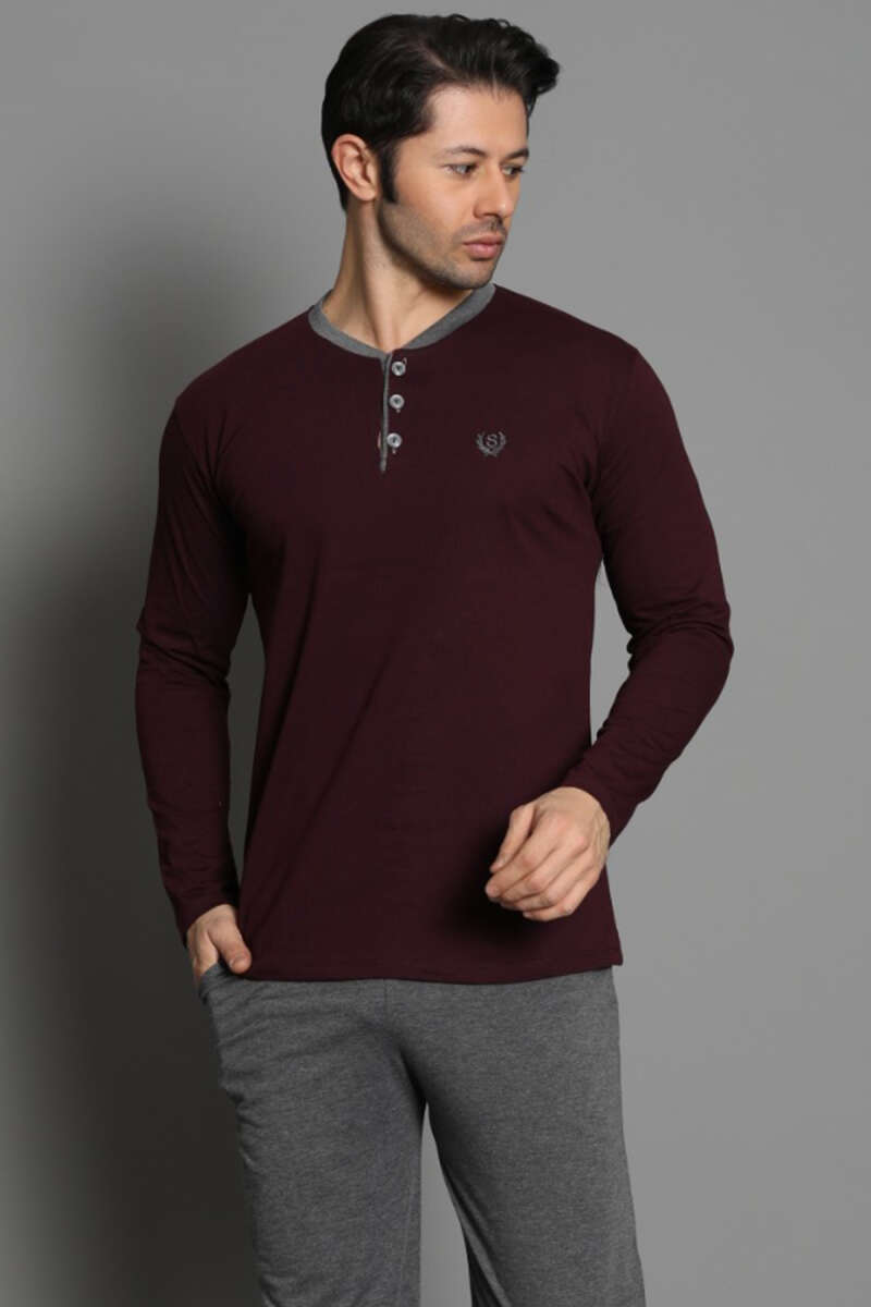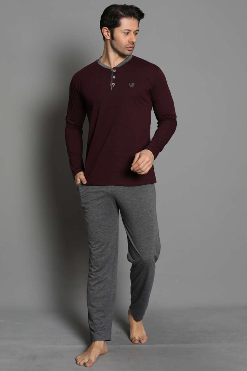 Nakış Detaylı Erkek Pijama Takımı Mürdüm