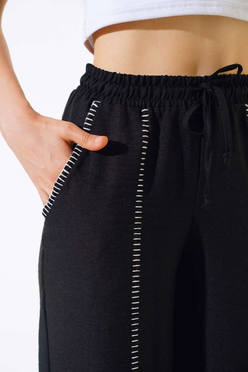 Kabartma Şeritli Taşlı Triko İkili Takım Nefti