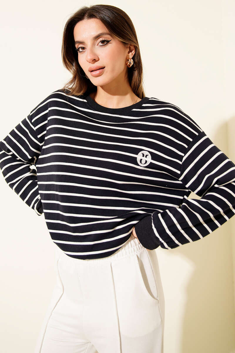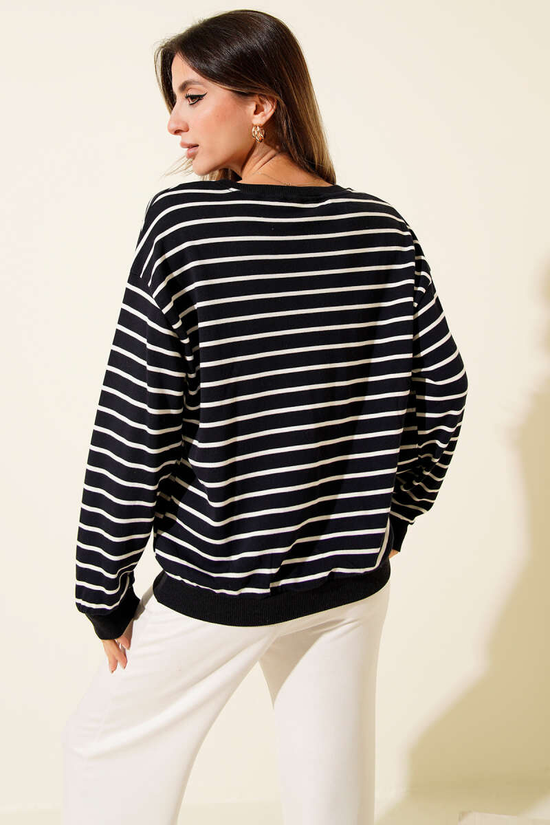 Dik Yaka Uzun Kol Bluz Simli Bluz Siyah
