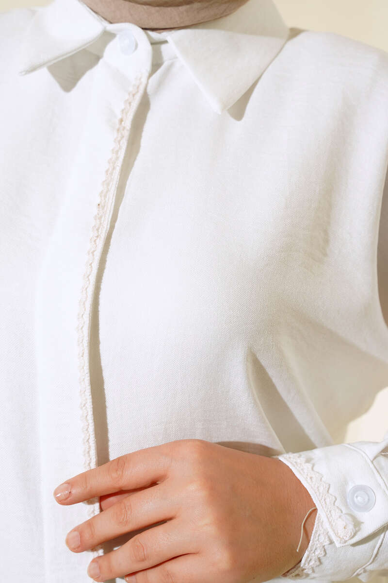 Nakış İşleme Detaylı Gömlek Beyaz