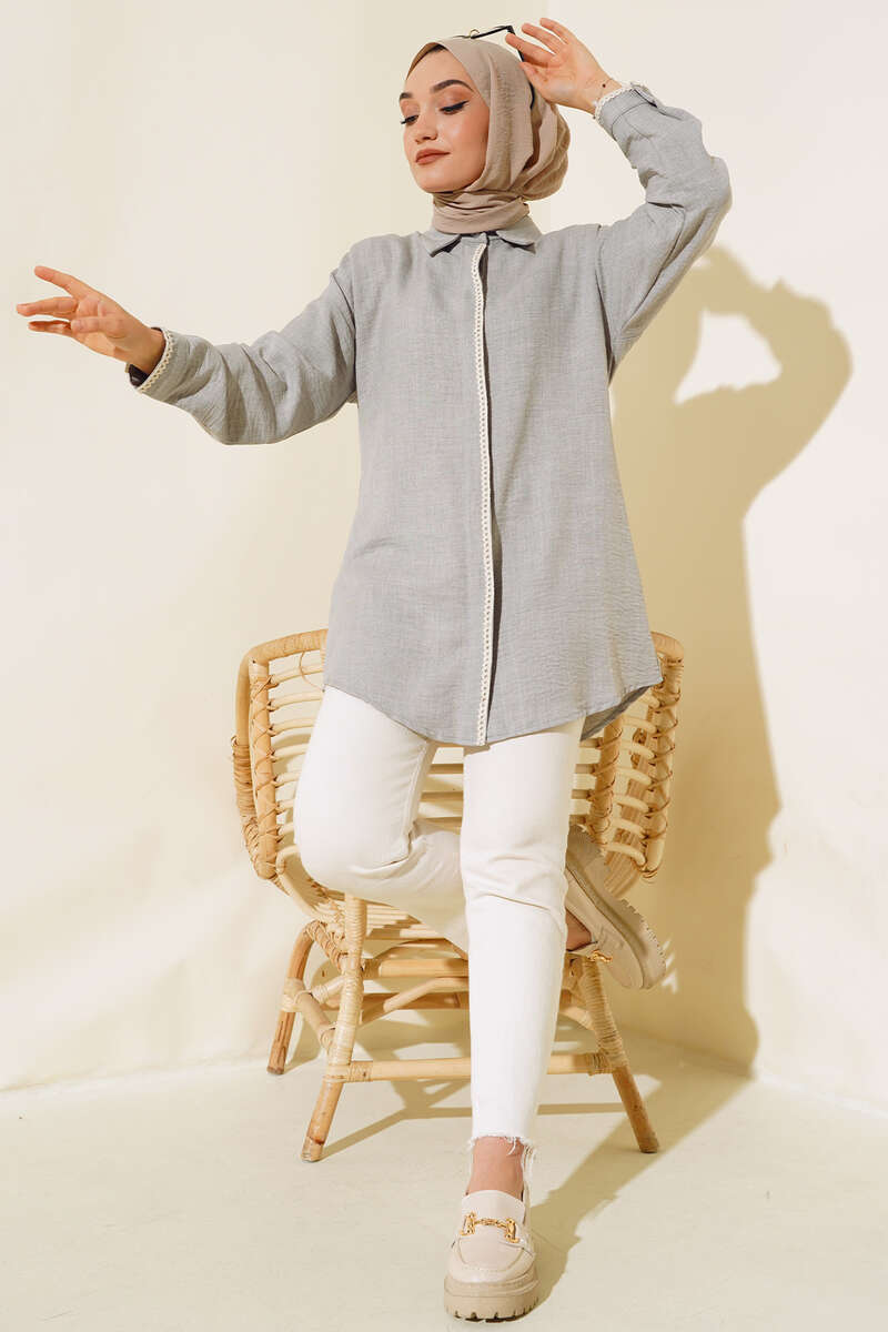 Yeni sezon gömlek modelimiz sizlerle beraber. Gömleğimizin önü ve kol bilekleri nakış detaylıdır. Önü boydan gizli düğmelidir. Oval kesimdir. Kol bilekleri manşetli ve düğmelidir. Salaş modeldir. Yaz ve bahar ayları için sizleri bekliyor. Renk seçenekleri mevcuttur.