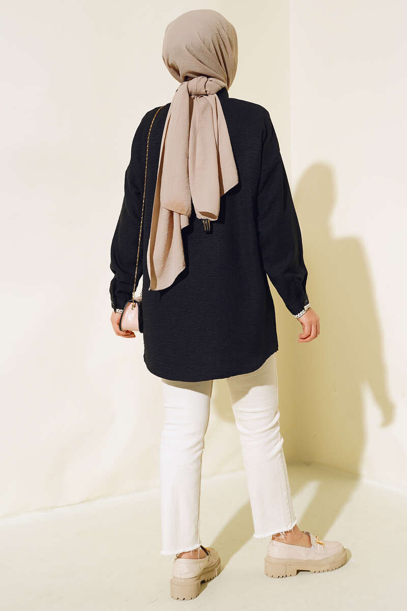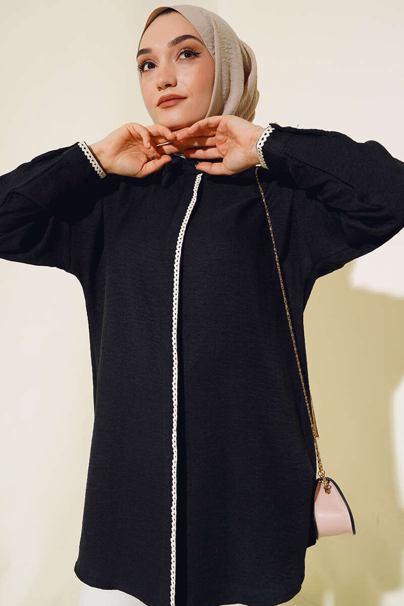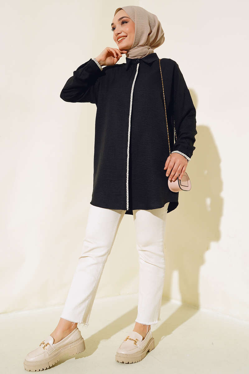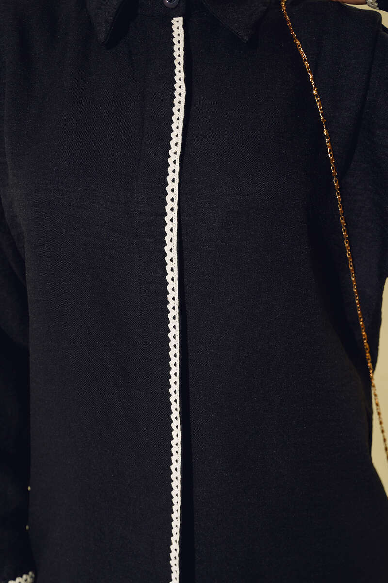 Fırfırlı Bebe Yaka Gömlek Siyah