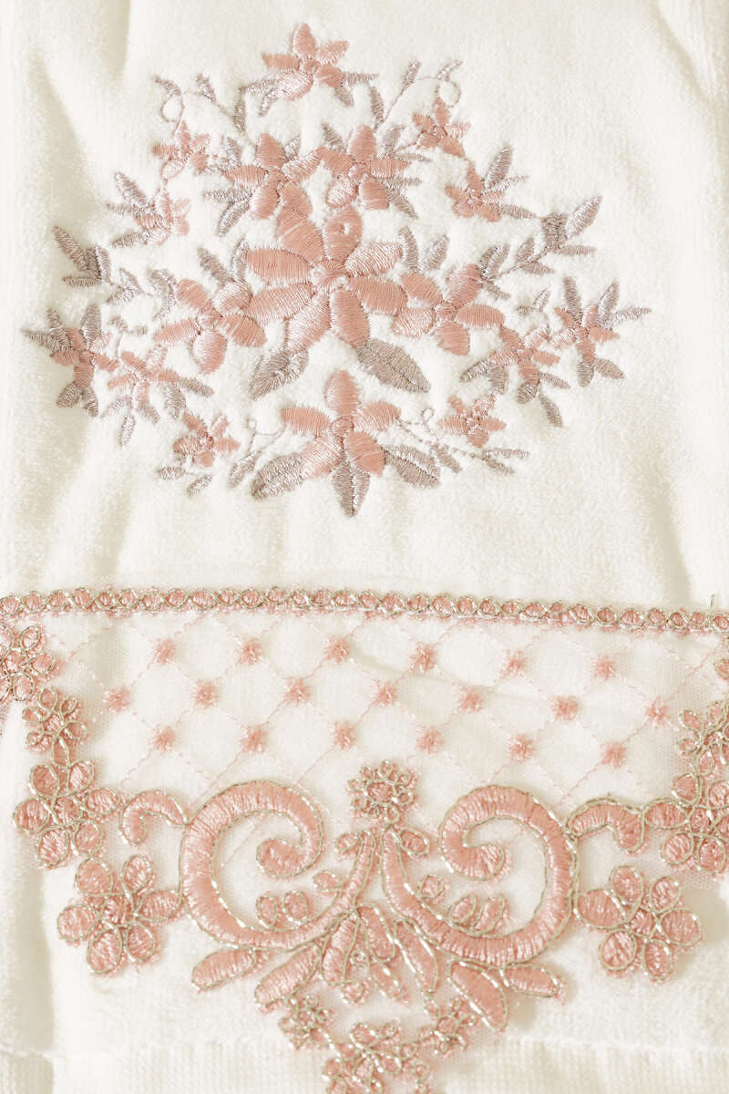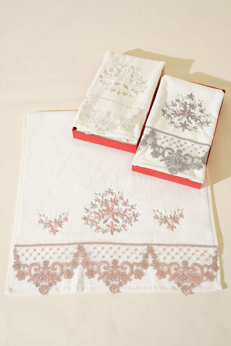 Nakış İşlemeli Kutulu El Yüz Havlusu Pudra